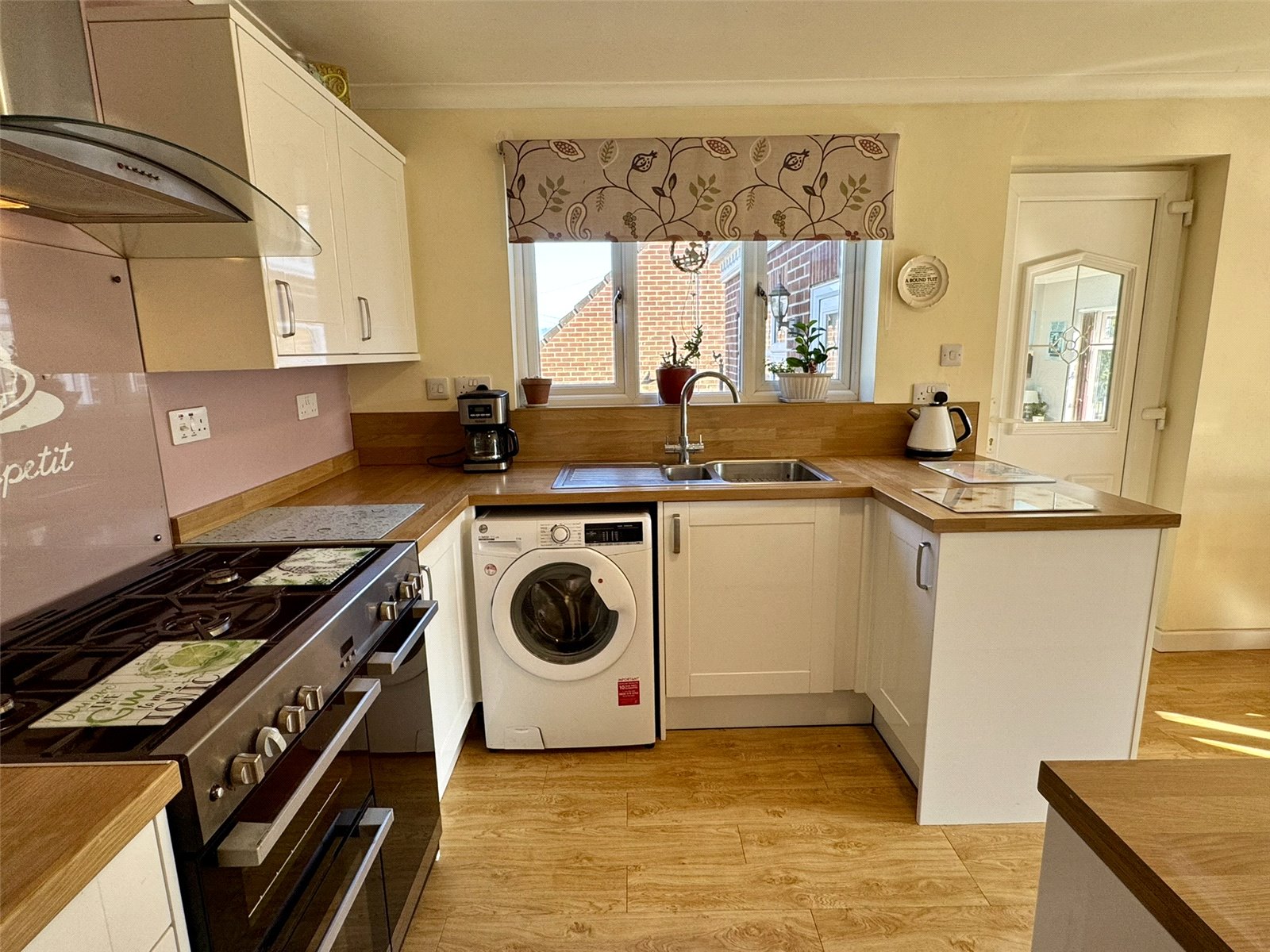 Kitchen/Diner 19'10" x 8'7" (6.05m x 2.62m). Fitted with a slection of modern wall, base and display units set beneath worktops with inset one and a half bowl sink and drainer. Space for cooker with hood over, space for fridge, space and plumbing for washing machine. Archway to, door to entrance hall and door with step down to Orangery.