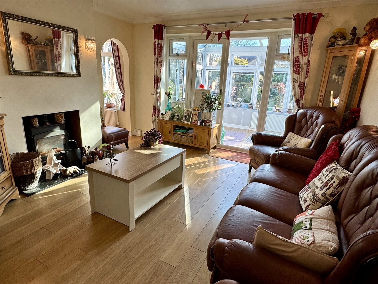 At the rear a modern double glazed conservatory provides further additional living space again overlooking the well-kept garden, this is linked with double doors to the main living room fitted with a multi-fuel buner.