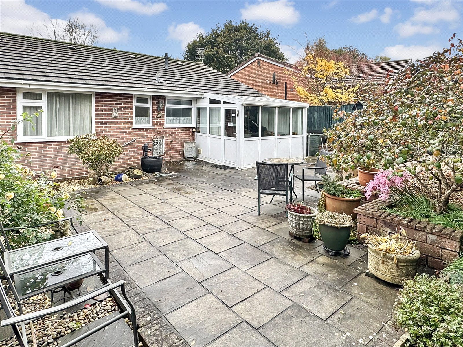 Rear Garden The rear garden is mainly laid to a low maintenance design with stone chipped borders housing a variety of shrubs, plants and trees. A large paved seating area provides ample space for socialising/entertaining whilst giving access to the conservatory. A wooden gate at the rear of the garden provides access to a path leading to the single garage.