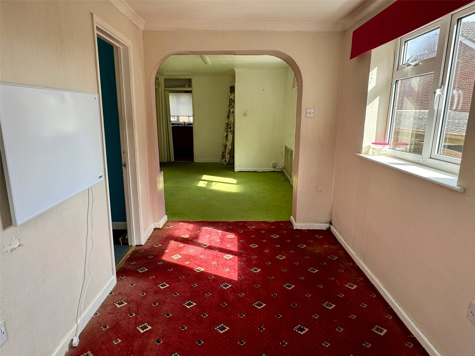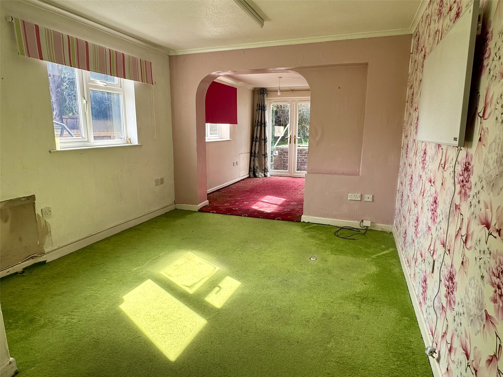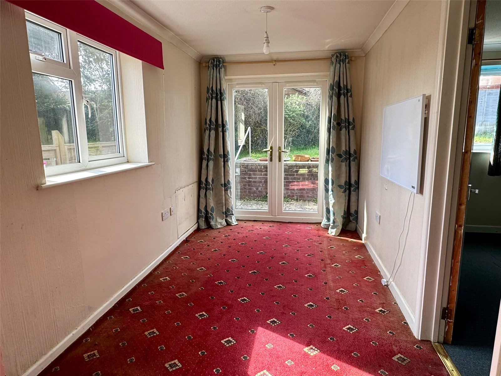 Dining Room 11'6" x 6'11" (3.5m x 2.1m). Wall mounted electric 'Princess' heater. Double glazed window to the side aspect, double glazed double doors out to rear garden. Door into bedroom two.