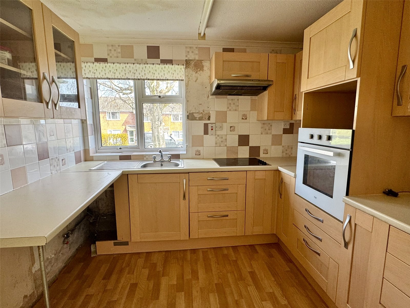 Kitchen 9'1" x 8' (2.77m x 2.44m). Fitted with wall and base units set beneath worktops with inset sink and drainer. Inset electric hob and hood over with further inset electric oven. Space and plumbing for washing machine, space for fridge freezer and double glazed window to the front aspect.