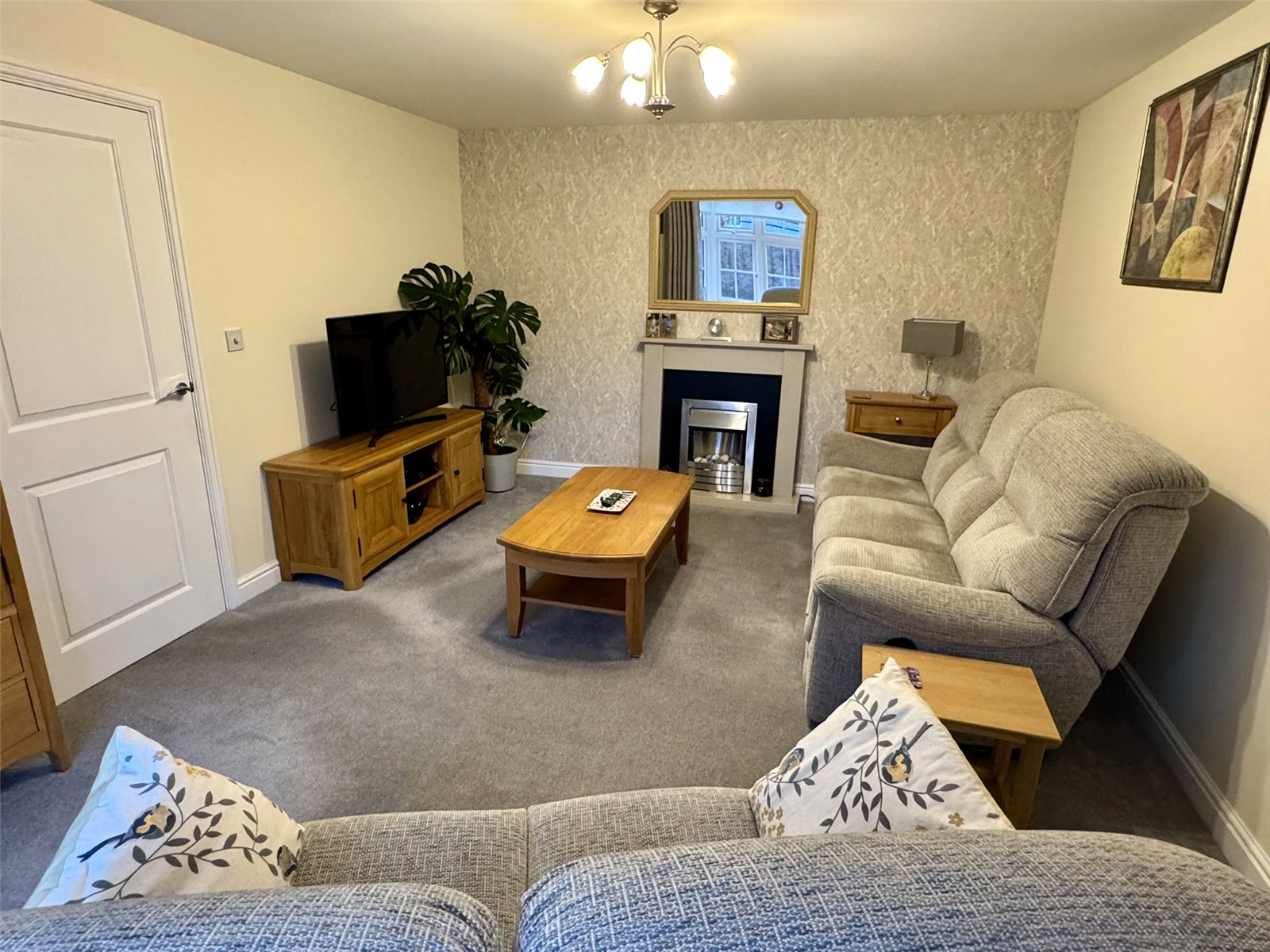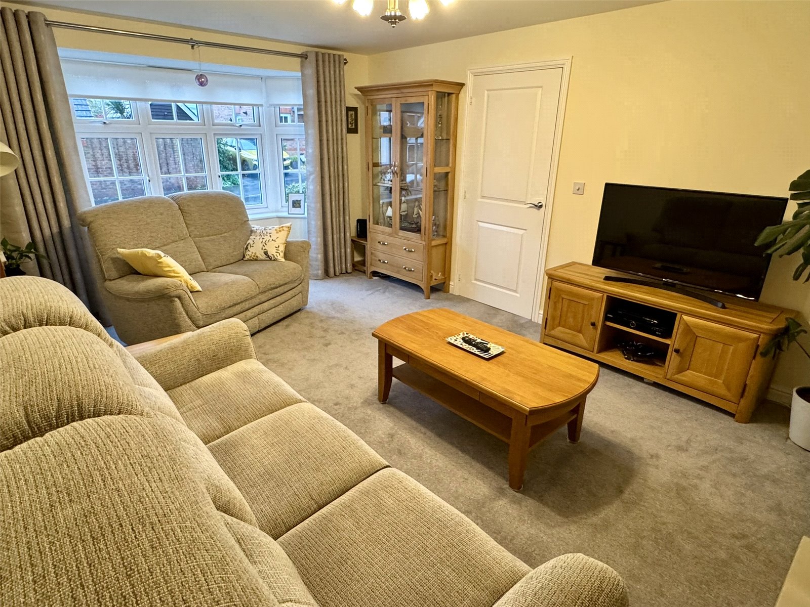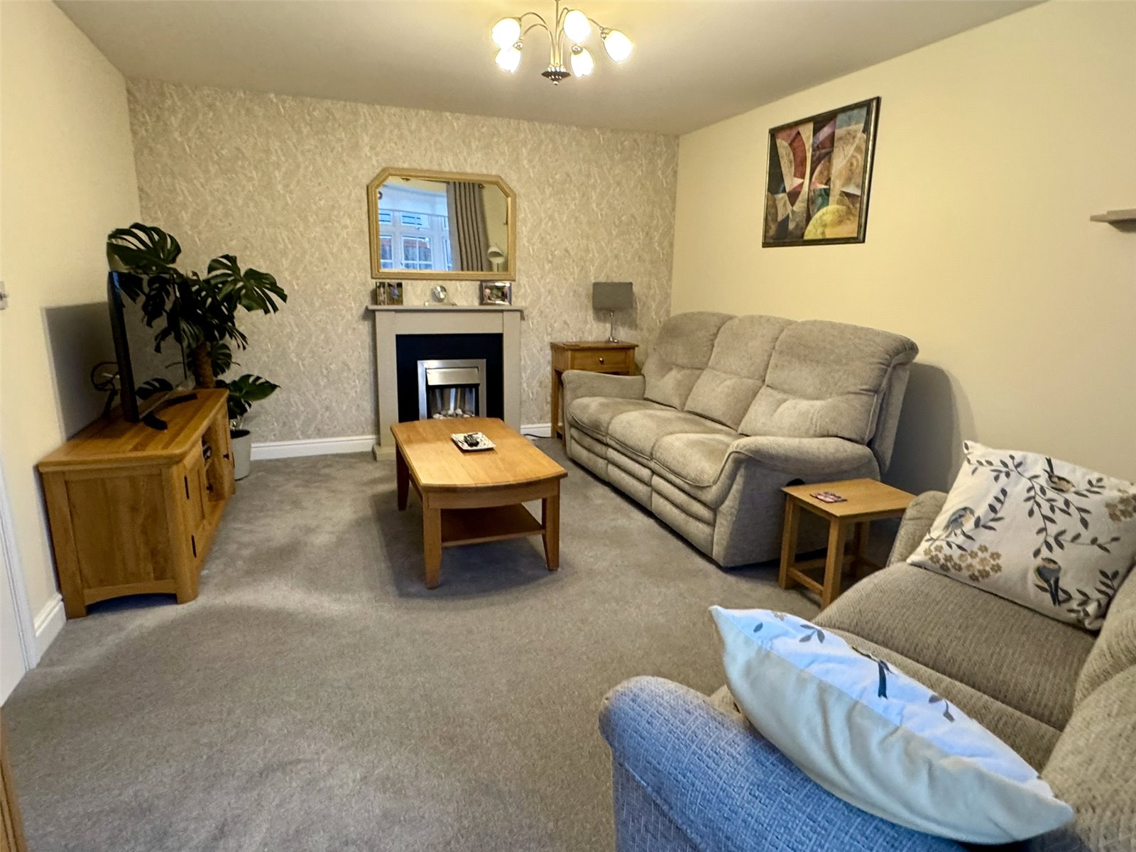 Lounge 17'1" x 11'11" (5.2m x 3.63m). Feature electric fire, radiator, television and satellite points, two telephone points and attractive double glazed bay window to the front aspect.