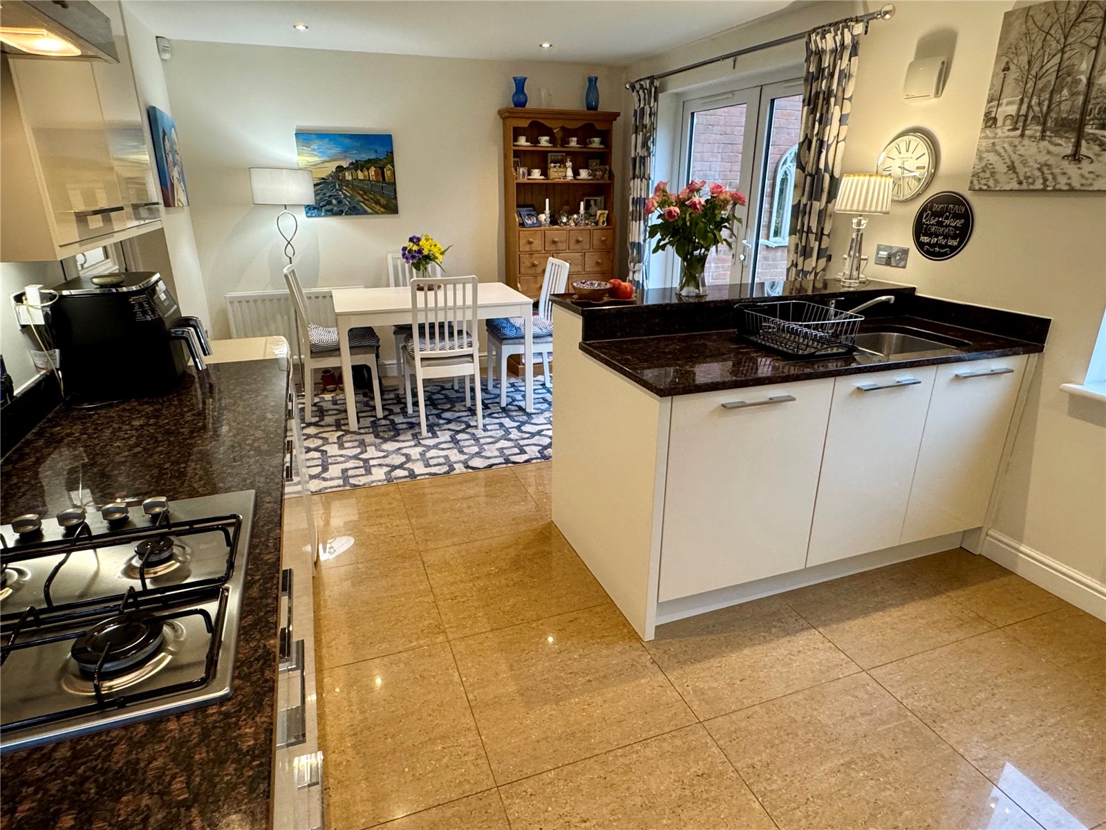 Kitchen/Diner 18'5" x 10'6" (5.61m x 3.2m). Fitted with a high quality modern high gloss kitchen fitted with a selection of wall and base units, island with storage under and inset sink. A range of integrated appliances including fridge freezer, dishwasher, microwave, oven and gas hob with hood over. Tiled flooring, spotlights, radiator, television point. Built in utility cupboard with space and plumbing for washing machine. Double glazed window to the rear aspect and double doors out to rear garden.