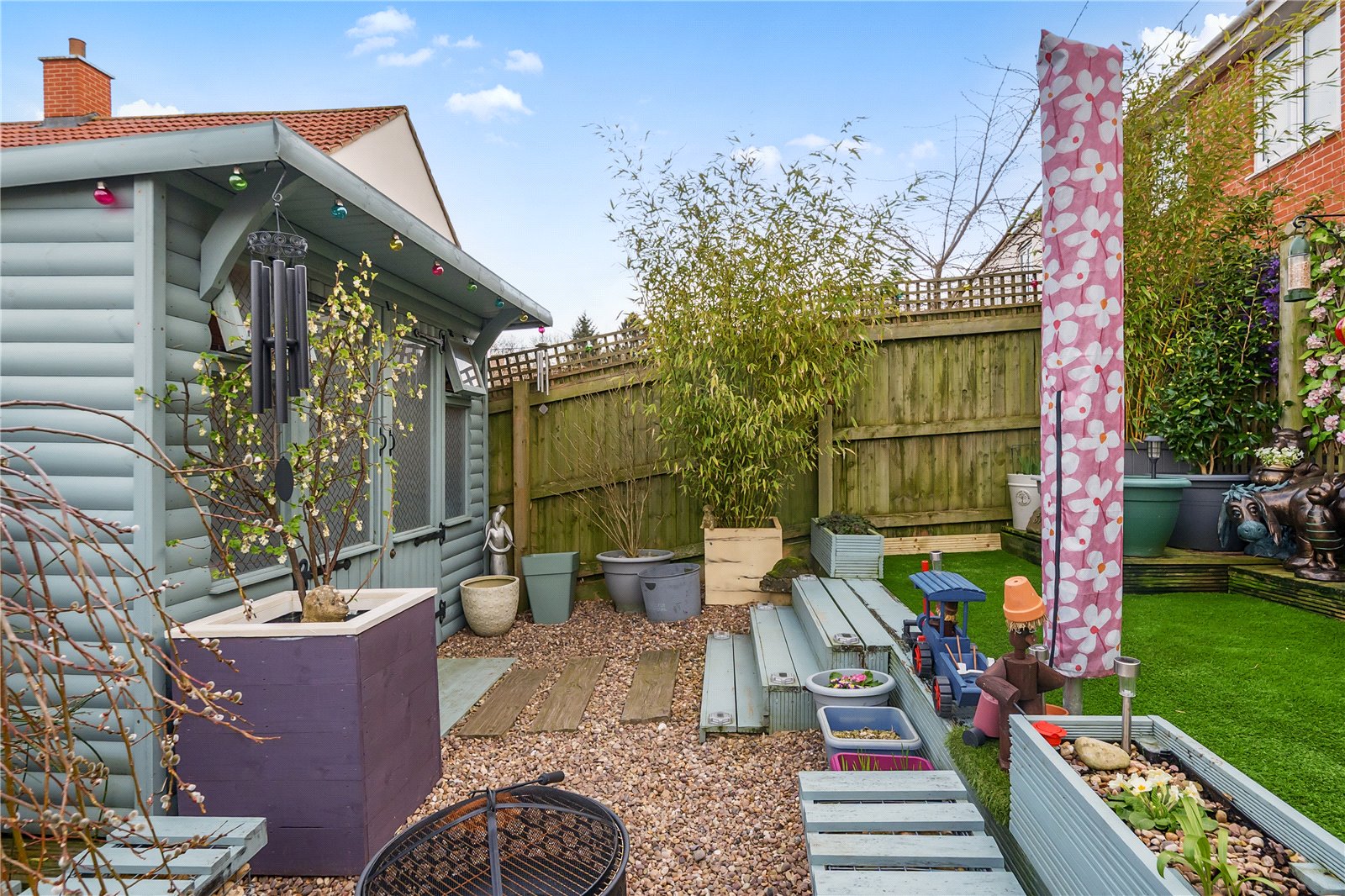A separate utility room provides additional shaker-style storage, space and plumbing for a washing machine, and houses a concealed wall-mounted central heating boiler with door out to the rear garden. From here, there is access to a convenient downstairs cloakroom, fitted with a modern two-piece suite and offering further space for coat hanging.On the first floor, there are two well-proportioned double bedrooms along with a comfortable single bedroom, all served by a contemporary family bathroom fitted with a modern three-piece suite.The landscaped rear garden has been thoughtfully designed with areas of patio and artificial lawn, complemented by a gravelled section in front of a charming summer house, providing an ideal outdoor retreat. A rear gate leads directly to the garage and parking, with additional visitor parking also available.Enjoying a favourable position on the eastern edge of Chard, the property is within easy walking distance of the scenic Chard Reservoir and Nature Reserve, offering a perfect balance of modern living and access to outdoor leisure. This superb home truly must be viewed to be fully appreciated.
