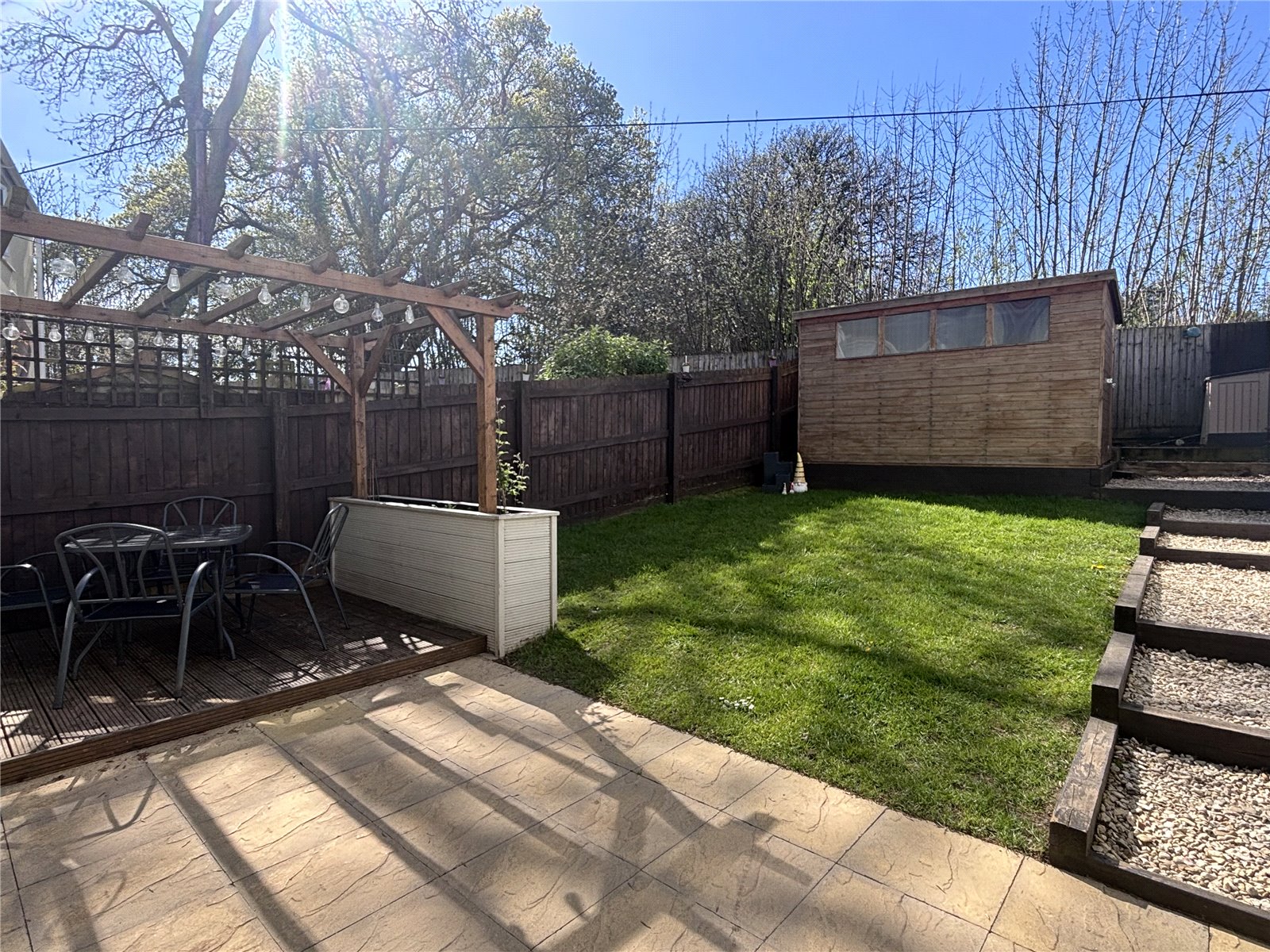 Externally, the rear garden is of a good size and has been thoughtfully arranged with a charming wooden Pergola seating area, a large wooden shed will also be included.