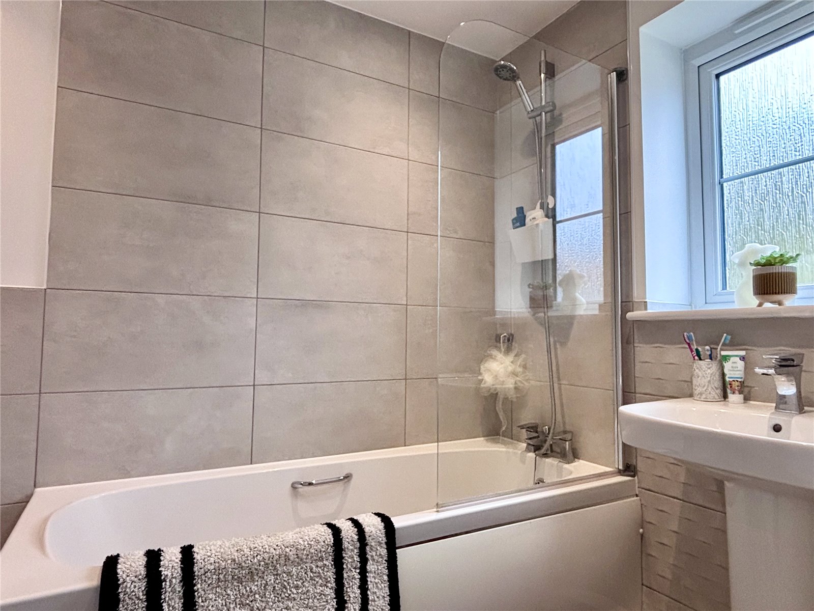 Upstairs, the main bedroom benefits from its own ensuite shower room, while two further bedrooms are served by a modern family bathroom.