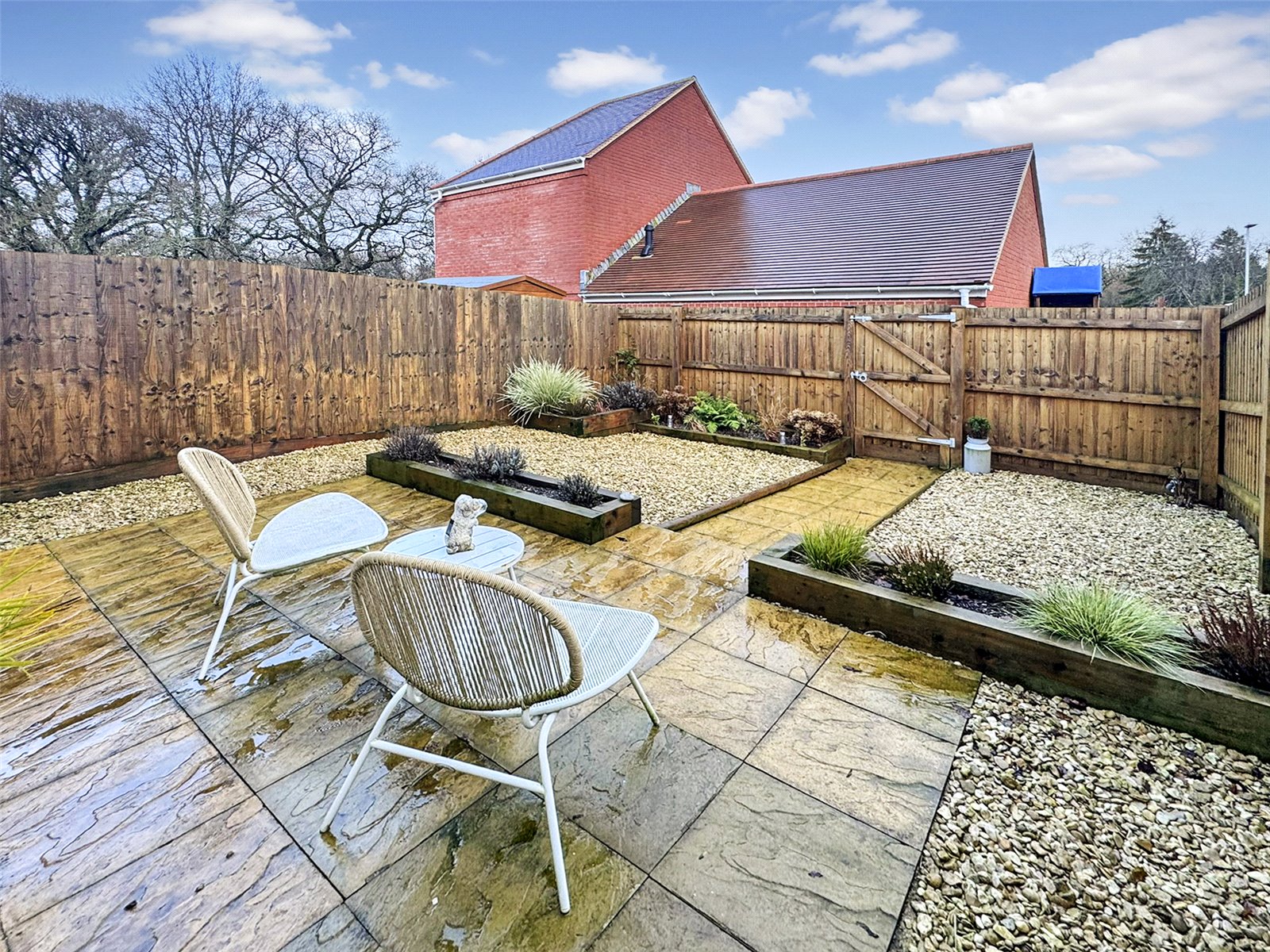 Outside, the rear garden has been designed for low maintenance, comprising a well-proportioned patio seating area with the remainder laid to stone chippings. A selection of modern raised planters provides attractive mature planting, adding colour and interest.