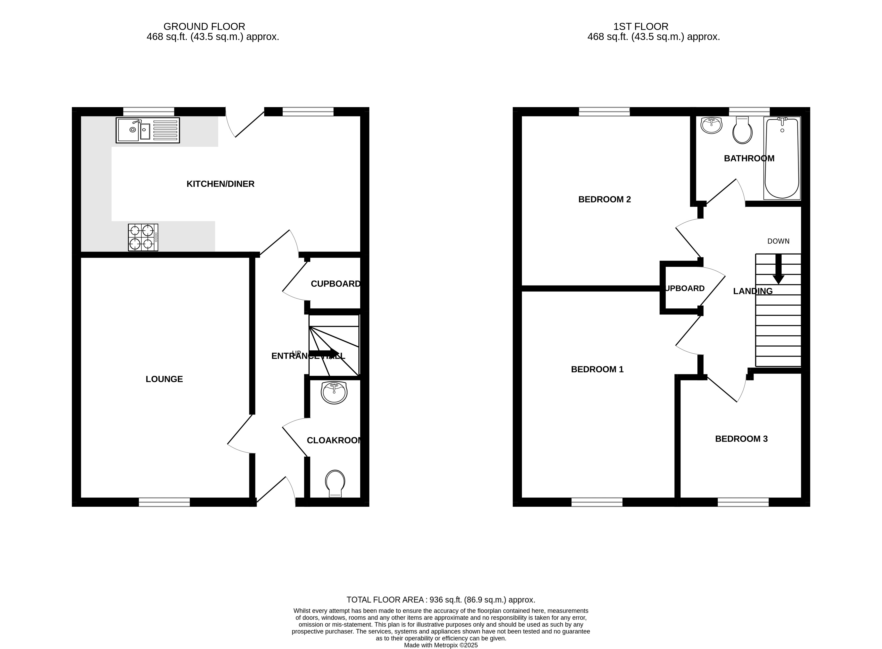Accommodation comprises: Entrance hall, lounge, kitchen/diner, cloakroom, three bedrooms and bathroom.