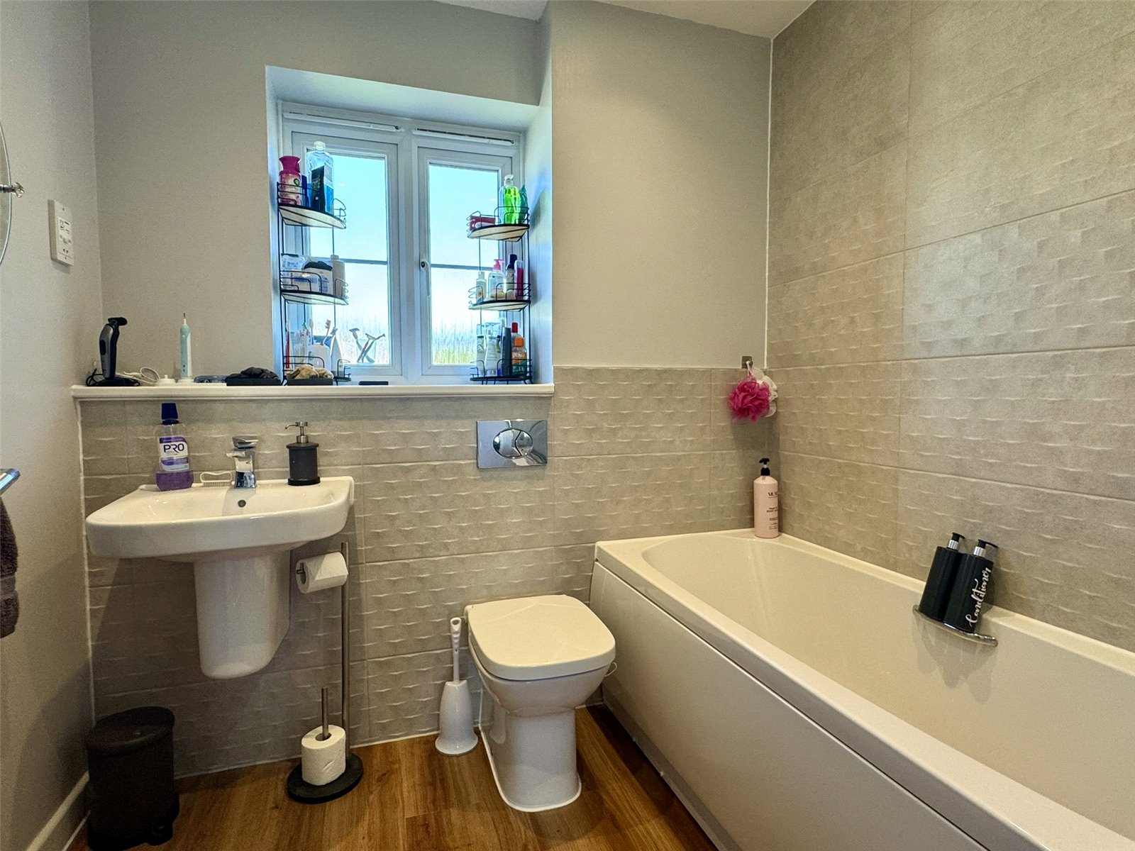 To the first floor are two generous double bedrooms and a third single room complimented by a bathroom fitted with a white modern three-piece suite.