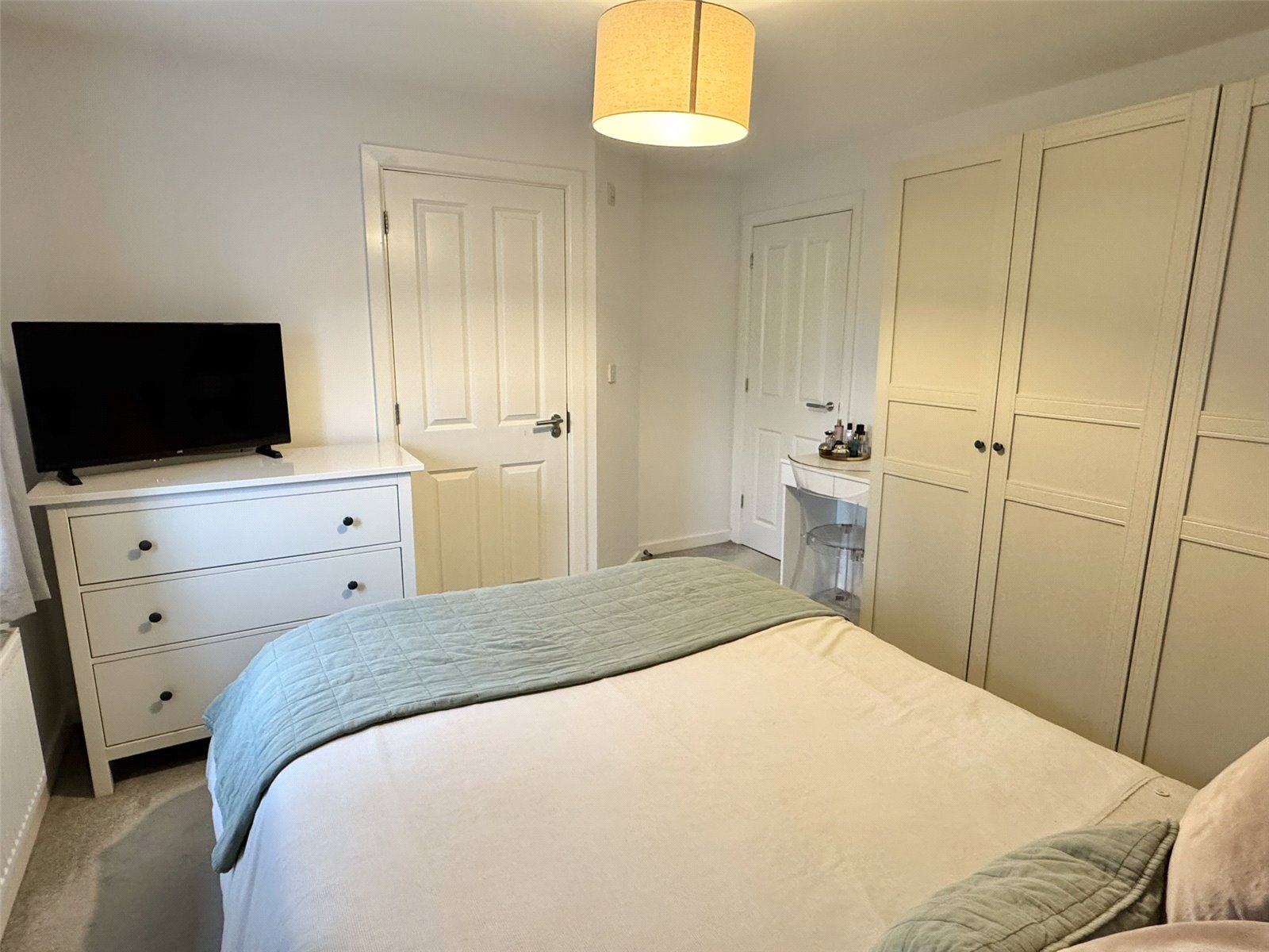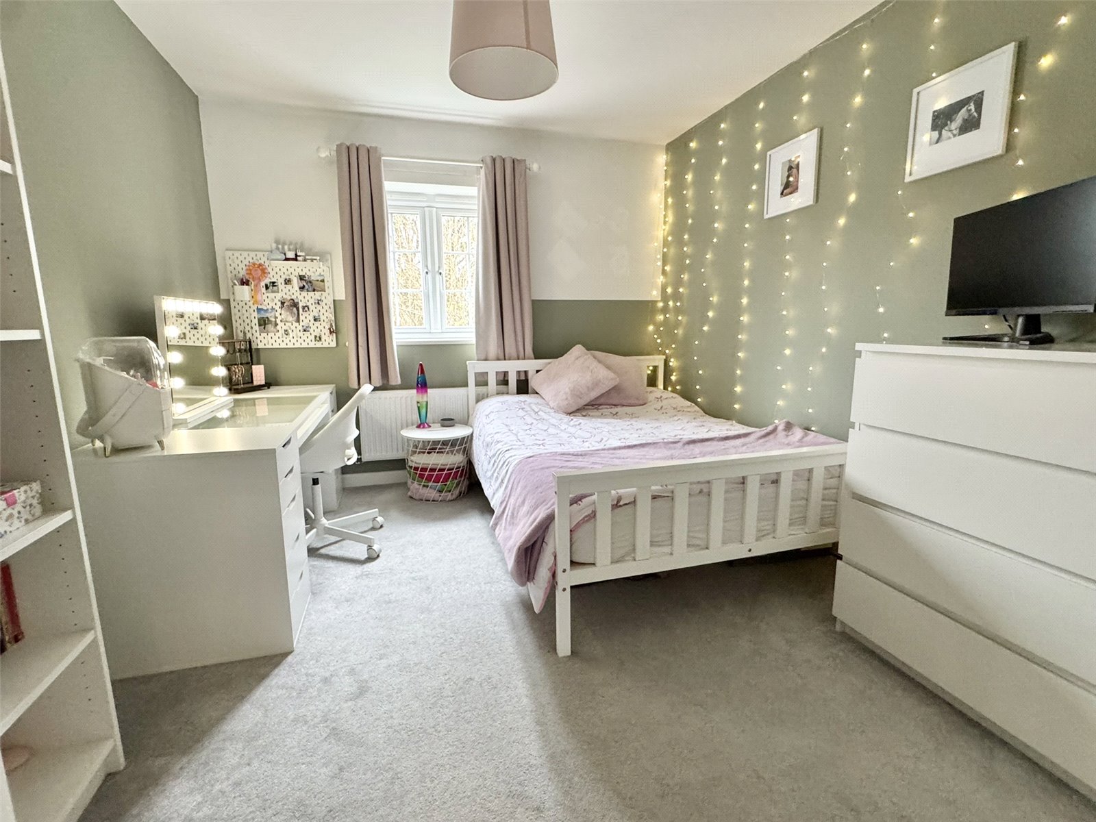Bedroom One 12'1" (3.69m) narrowing to 10'2" (3.10m) x 11'4" (3.46m). Double glazed window to the rear aspect, attractive decorative wall panelling, radiator, television point and door into ensuite shower room.
