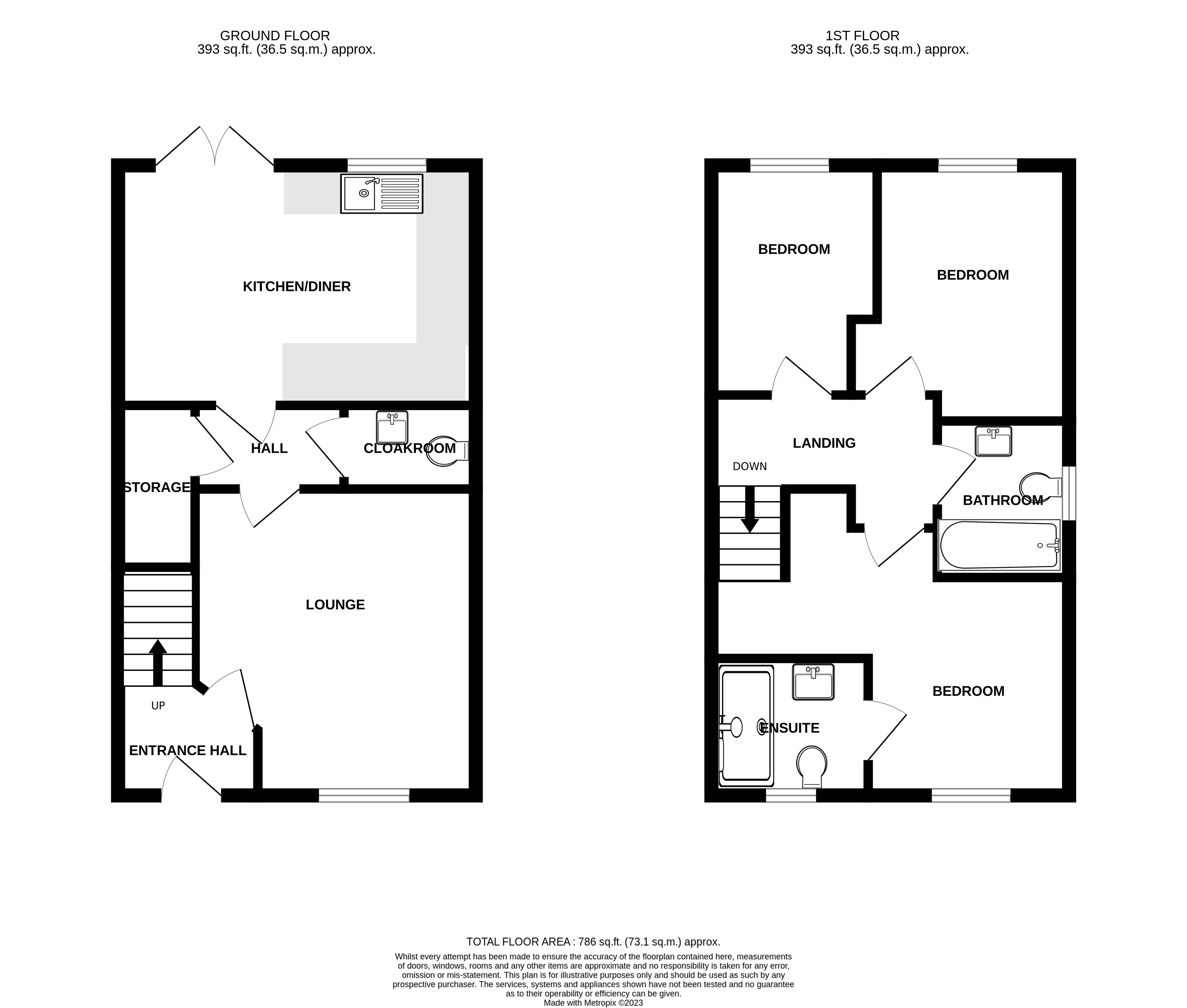 Accommodation comprises: Entrance hallway, lounge, inner hallway with understairs storage cupboard, downstairs cloakroom and kitchen/diner with French door leading out to the enclosed rear garden which is mainly laid to lawn. Master bedroom with en-suite shower room and a further two bedrooms and family bathroom.