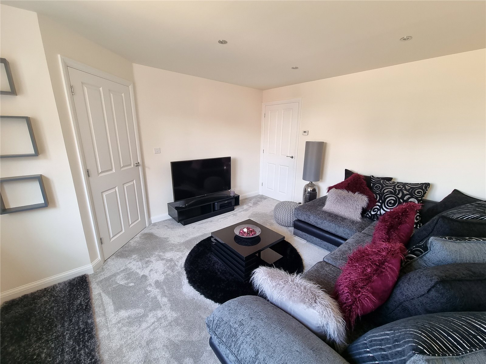 Lounge 12'10" (3.92m) x 11'9" (3.58m) narrowing down to 9' (2.74m). uPVC double glazed window to the front aspect, radiator, inset spotlights and door to: