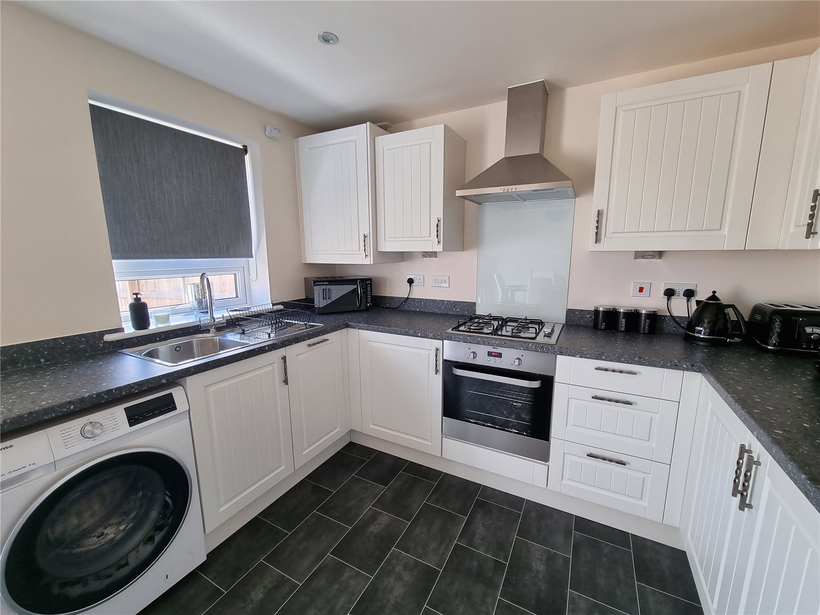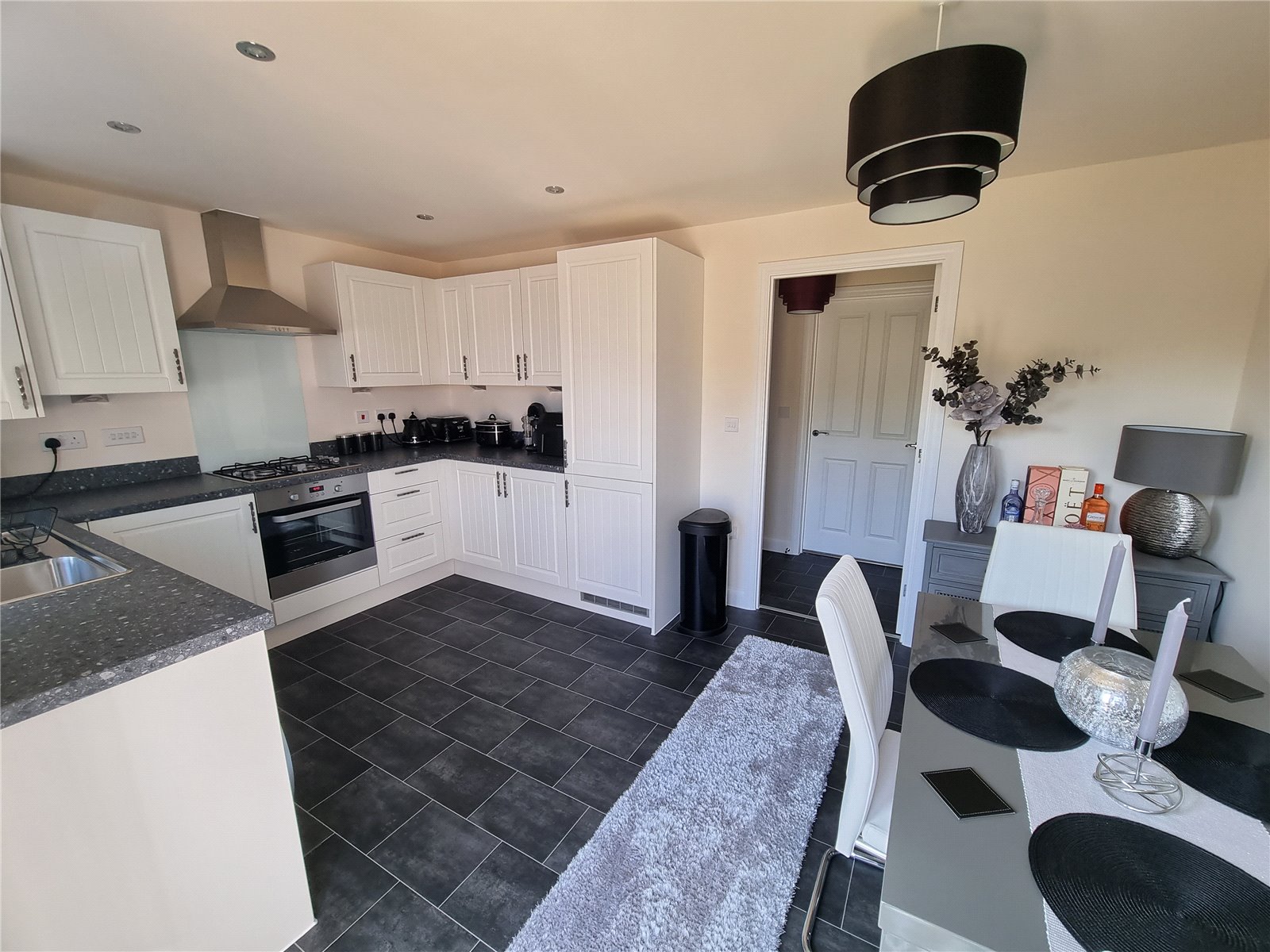 Kitchen/Diner 15' x 10' (4.57m x 3.05m). Comprehensively fitted with a range of matching wall and base units with adjoining work top preparation surface and inset stainless steel sink and drainer with mixer tap over. Fitted appliances include oven and gas hob with cooker hood over. Fridge/freezer, dishwasher and space for washing machine. Wall mounted concealed gas central heating boiler, inset spotlights, radiator, uPVC double glazed window and uPVC double glazed French doors giving access to the rear garden.