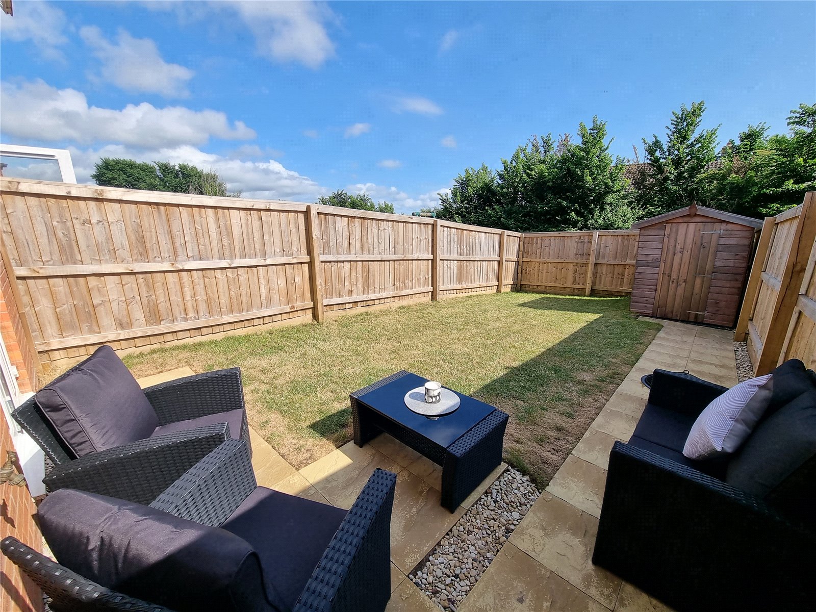 Outside Pathway leading to the front entrance door with an area laid to low level shrubs. The rear garden is enclosed by panelled fencing and is mainly laid to lawn with a paved pathway leading down to the timber shed. Gate gives access to the parking area with off street parking for 2 vehicles.