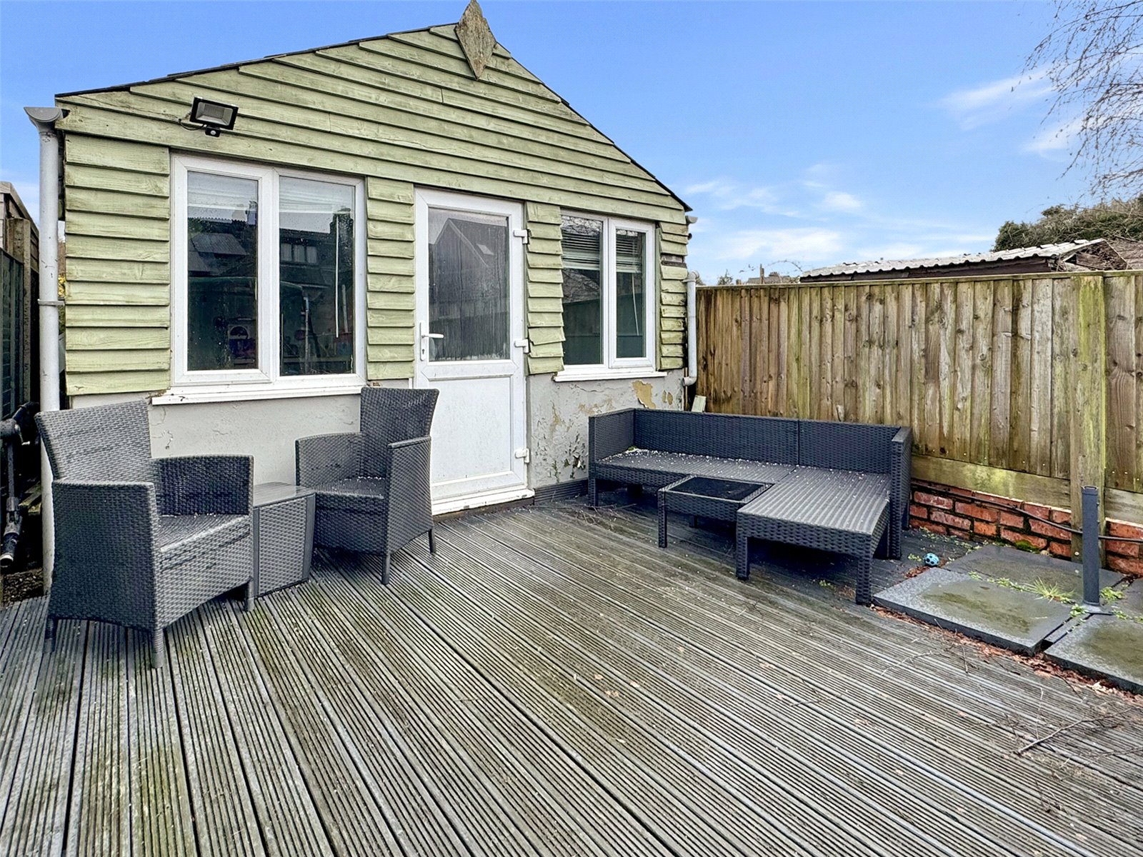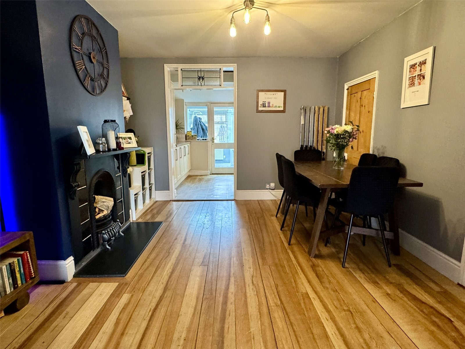 This charming older-style terraced property is arranged over three floors and offers deceptively spacious accommodation, complemented by a generously sized rear garden. Beautifully presented throughout, the home combines character features with modern conveniences, creating an inviting and practical living environment.The ground floor welcomes you into a comfortable lounge featuring an attractive bay window that allows plenty of natural light to flow in. A fireplace housing a wood-burning stove provides a cosy focal point, and the space opens seamlessly into the dining room, which itself boasts an antique-style feature fireplace, adding further charm and character. To the rear of the property is a modern fitted shaker-style kitchen, thoughtfully designed with integrated appliances and ample storage space. The kitchen opens into a separate utility room, which provides access to a convenient downstairs cloakroom as well as double doors leading directly out to the rear garden.The first floor offers two well-proportioned double bedrooms along with a spacious family bathroom. The second floor is dedicated to a delightful attic main bedroom, a bright and airy space enhanced by two large skylights and an additional smaller skylight. This room also benefits from fitted wardrobes and useful eaves storage.Outside, the property enjoys a long rear garden that has been attractively arranged to create several areas for relaxation and entertaining. Immediately to the rear of the house is a stone-chipped seating area, leading onto a long lawn with a pathway that guides you to a raised decked seating area at the far end. From here there is access to a useful block-built outbuilding with light, power and double-glazed windows. This versatile space could be used as a home office, summerhouse or playroom and enjoys the advantage of backing onto open parkland.Further benefits include double glazing, gas central heating and on-street parking. The property is presented in excellent condition throughout, making it an ideal home for those seeking both character and space in a well-maintained setting.