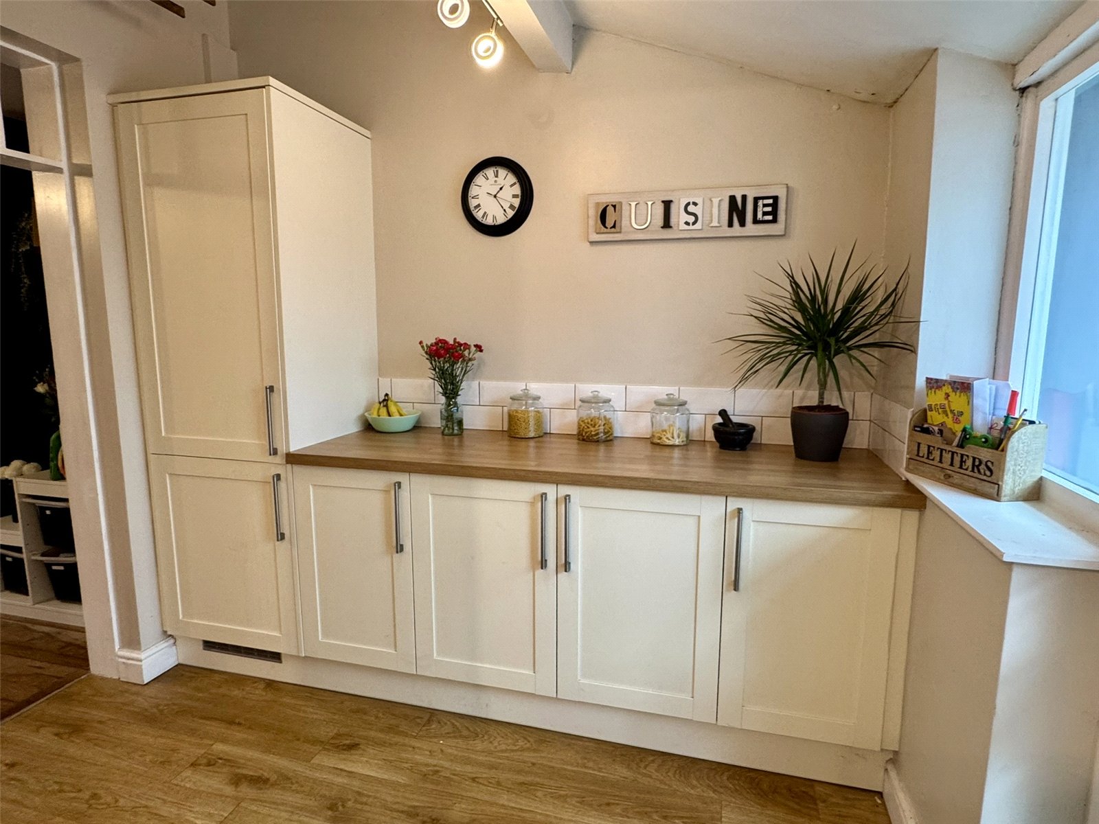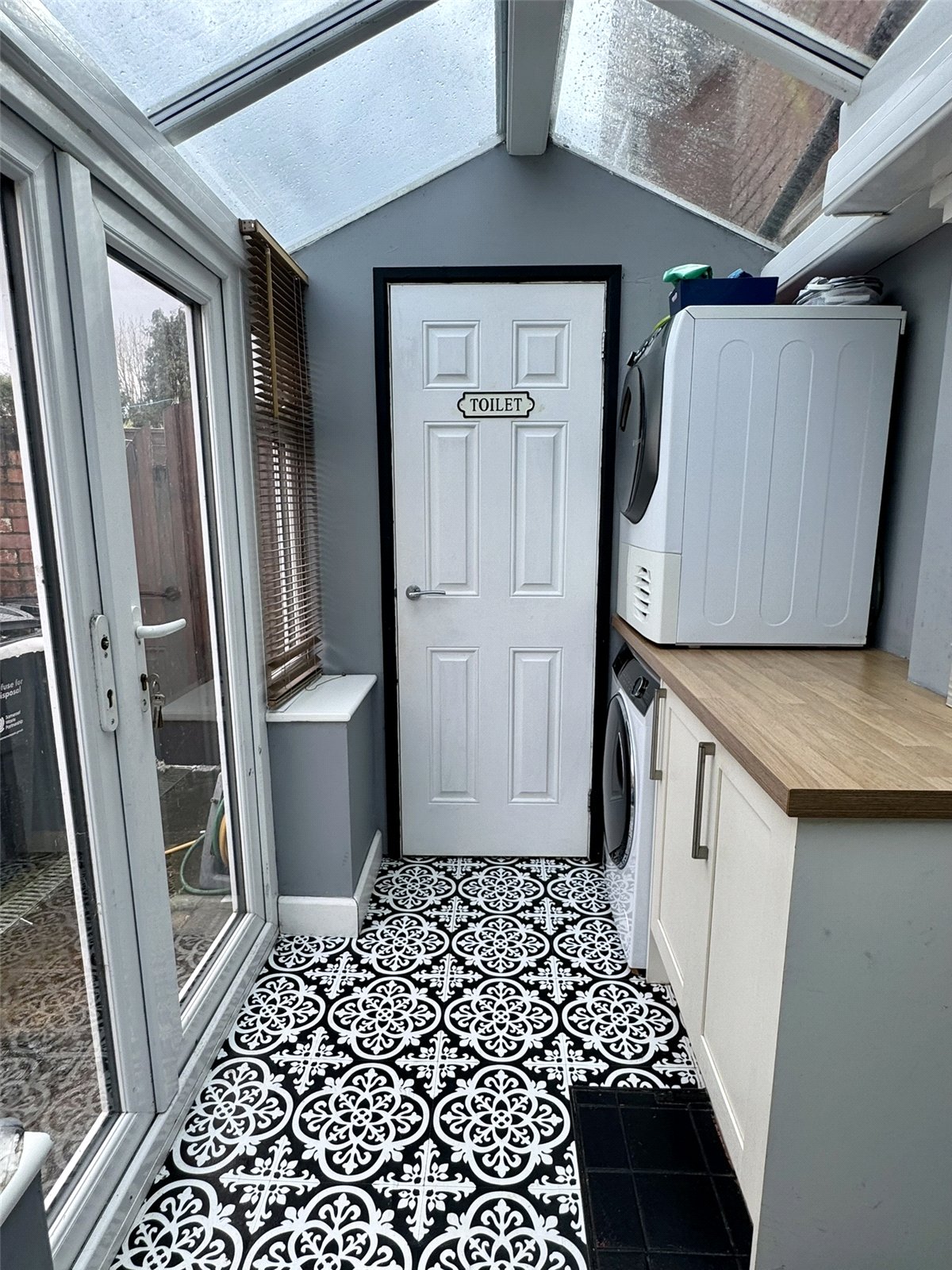 Utility Room 10'2" x 5'9" (3.1m x 1.75m). Of brick and uPVC construction with double doors opening out to rear garden. Base storage unit set under worktop. Space and plumbing for washing machine. Radiator and coat hanging space. Door to cloakroom.