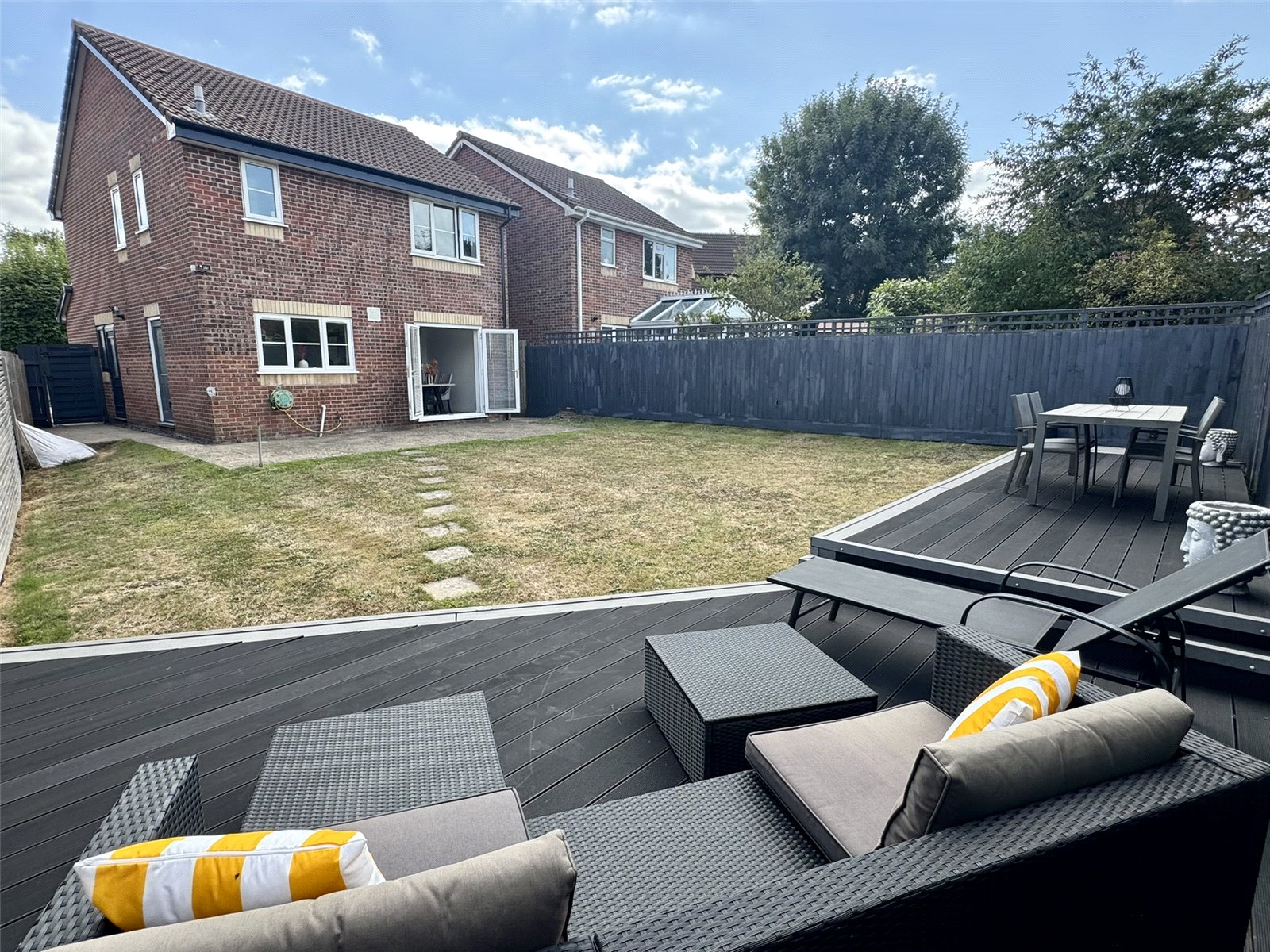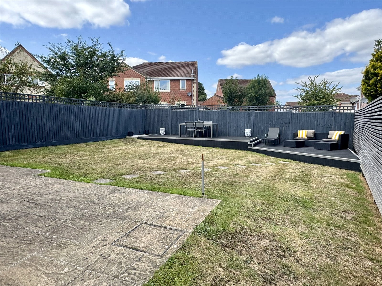 Rear The rear garden is a lovely size offering ample space to extend the property should a prospective purchaser wish to do so, subject to the necessary consents. A paved area provides ample space for seating and entertaining leading to a large lawn area. At the rear of the garden is a further decked area laid to modern composite decking providing additional seating and entertaining space. A path to the side leads to a personal door into the garage. The garden is enclosed by wooden fencing. Outside tap and courtesy lighting.