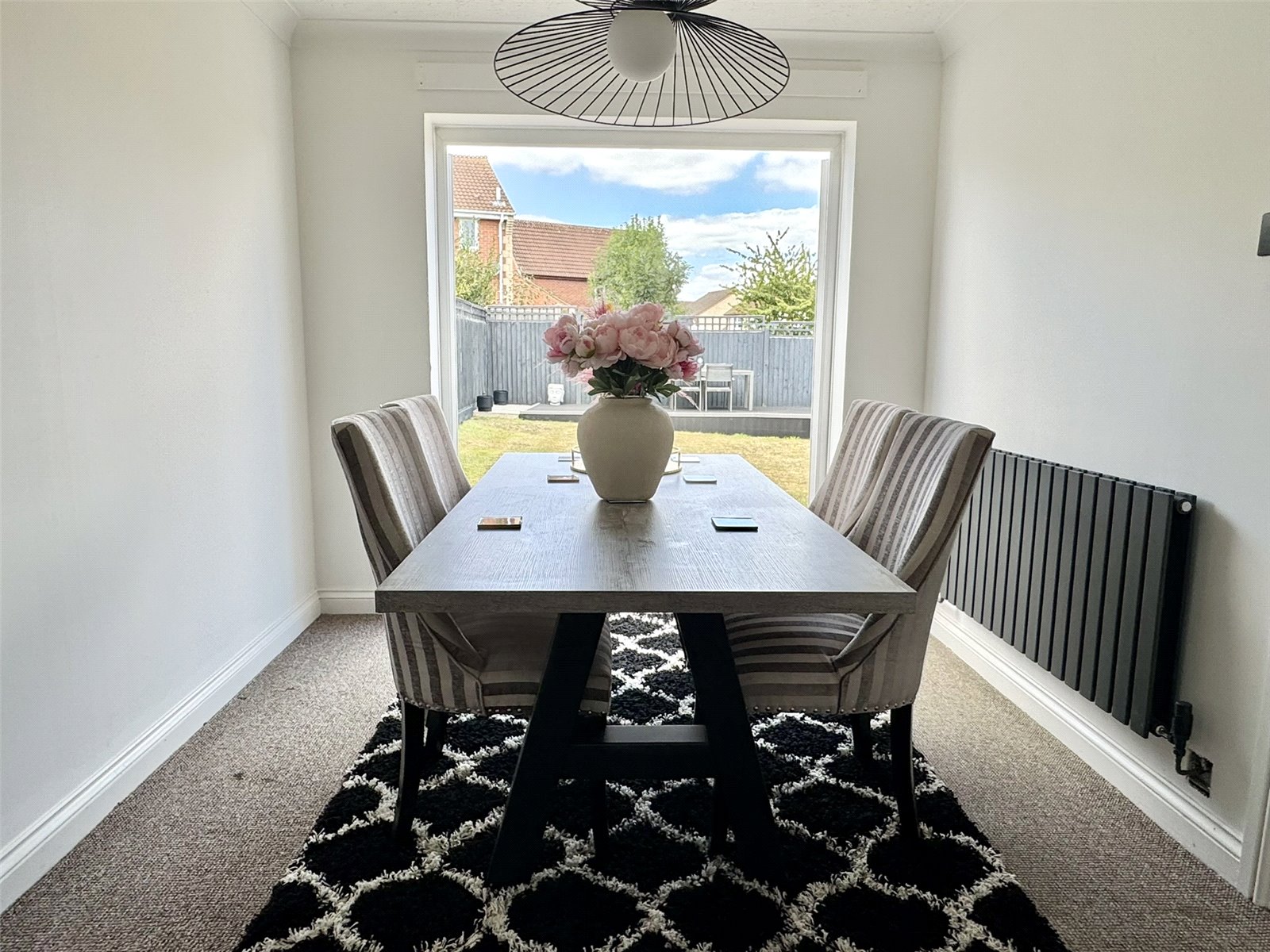 Dining Room 8'11" x 8'7" (2.72m x 2.62m). Radiator and double glazed patio doors opening out onto the rear garden. Door into kitchen.
