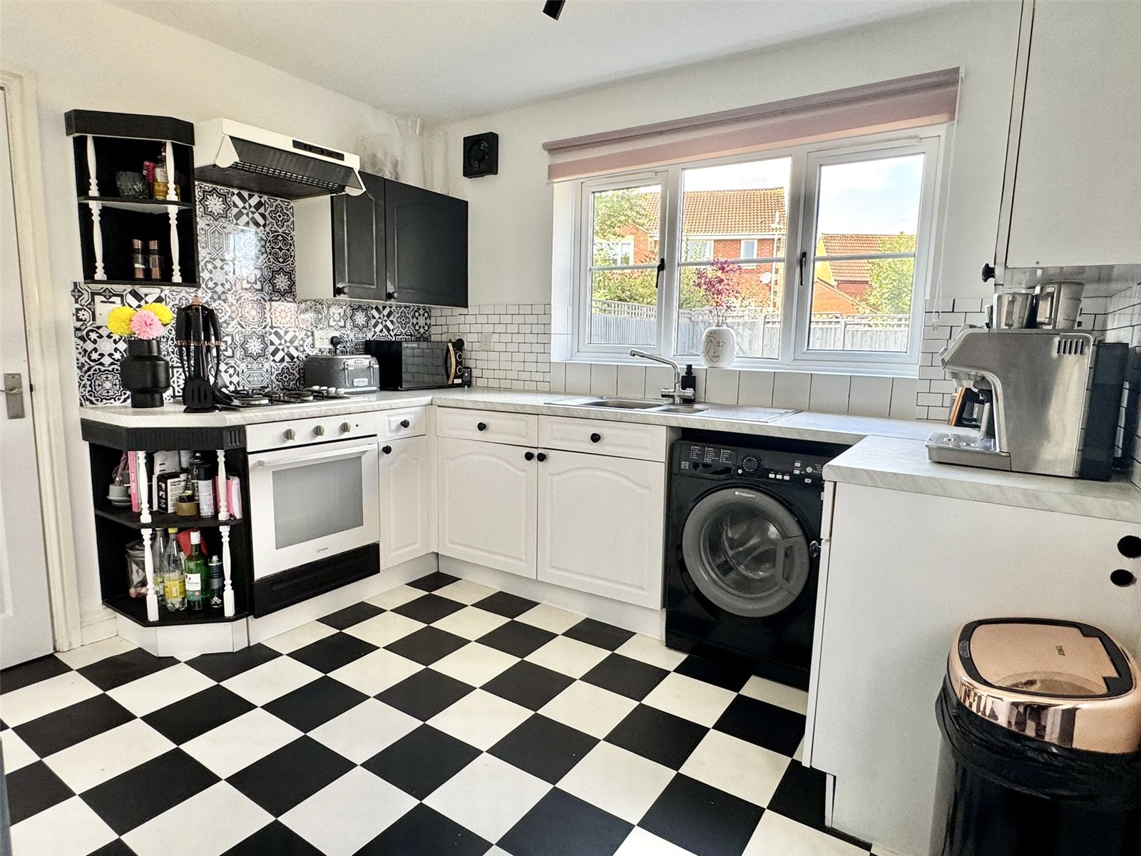 Kitchen 10'3" x 9' (3.12m x 2.74m). Matching wall and base units set beneath worktops with inset one and a half bowl sink and drainer. Inset electric oven with gas hob and hood over. Space and plumbing for washing machine. Double glazed window to the rear aspect, understairs storage cupboard with space for fridge freezer. Door out to side garden.