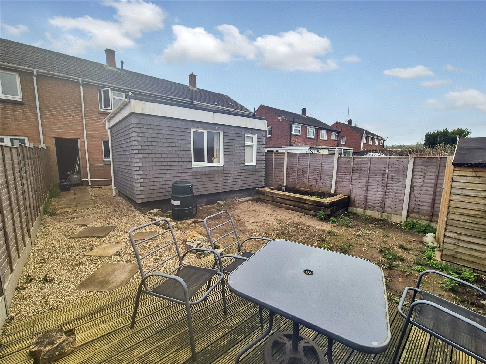 Outside The front of the property is laid to brick paving with pathway to the front entrance door. Wooden gate gives access to an alleyway leading down the side of the property into the rear garden. The rear garden is laid to a mixture of stone chippings, decking and soil with a raised flower bed and timber shed.