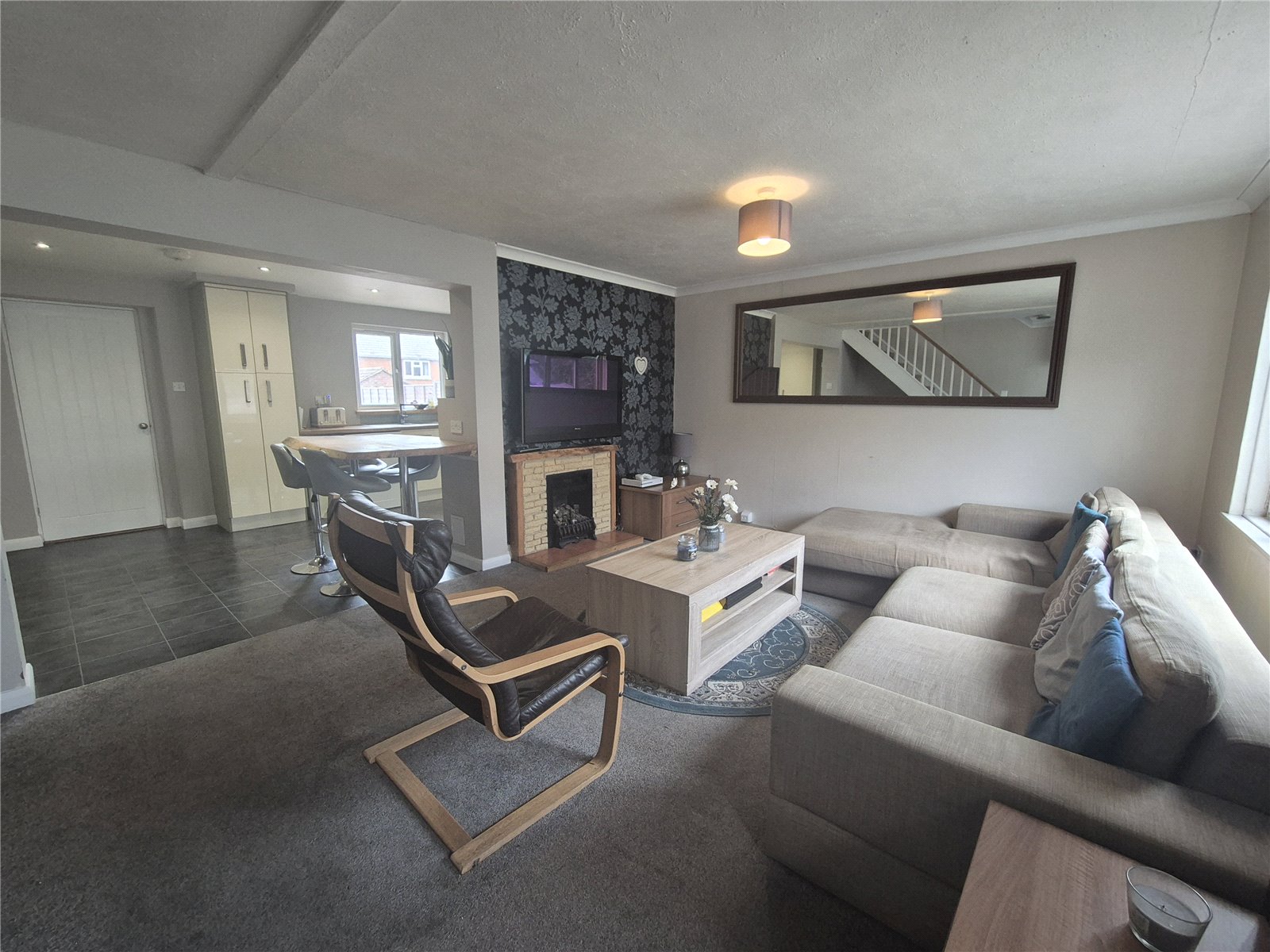 Lounge 17'10" x 12'4" (5.44m x 3.76m). uPVC double glazed front door, gas fire place, radiator, stair rising to first floor and uPVC double glazed window to the front aspect. Opening though to: