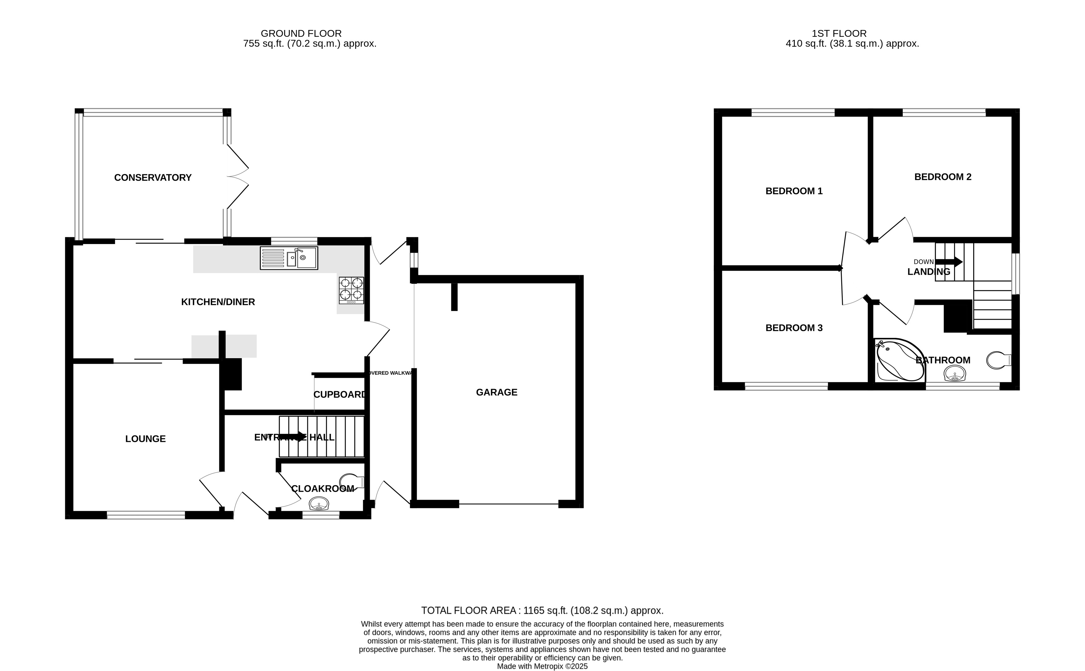 Front The front garden is laid to lawn with mature planting. A driveway provides off street parking giving access to the garage, main entrance door and enclosed walkway.
