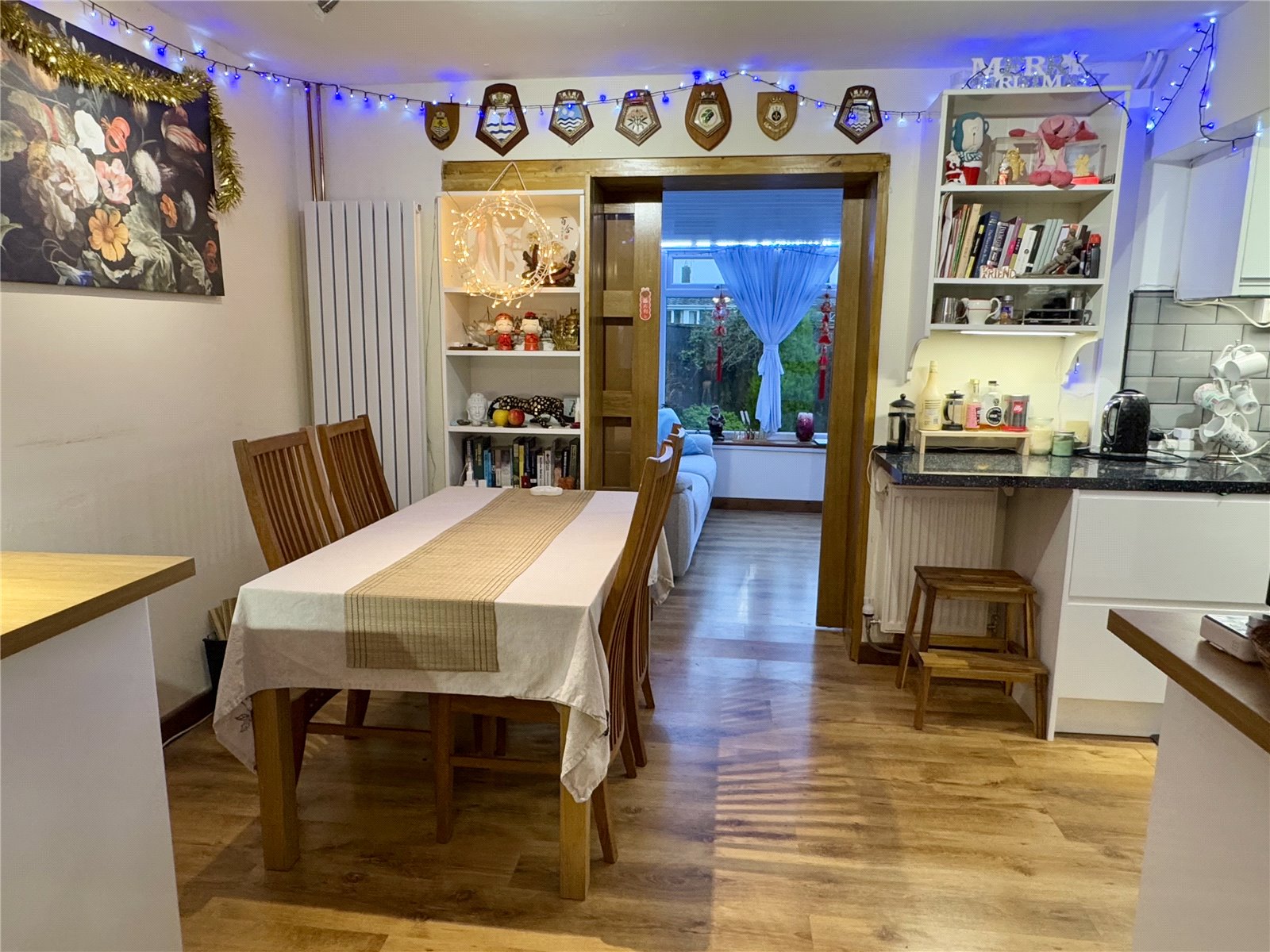 Lounge 11' x 10'10" (3.35m x 3.3m). Radiator, television point and double glazed window to the front aspect. Sliding door through to kitchen/diner.