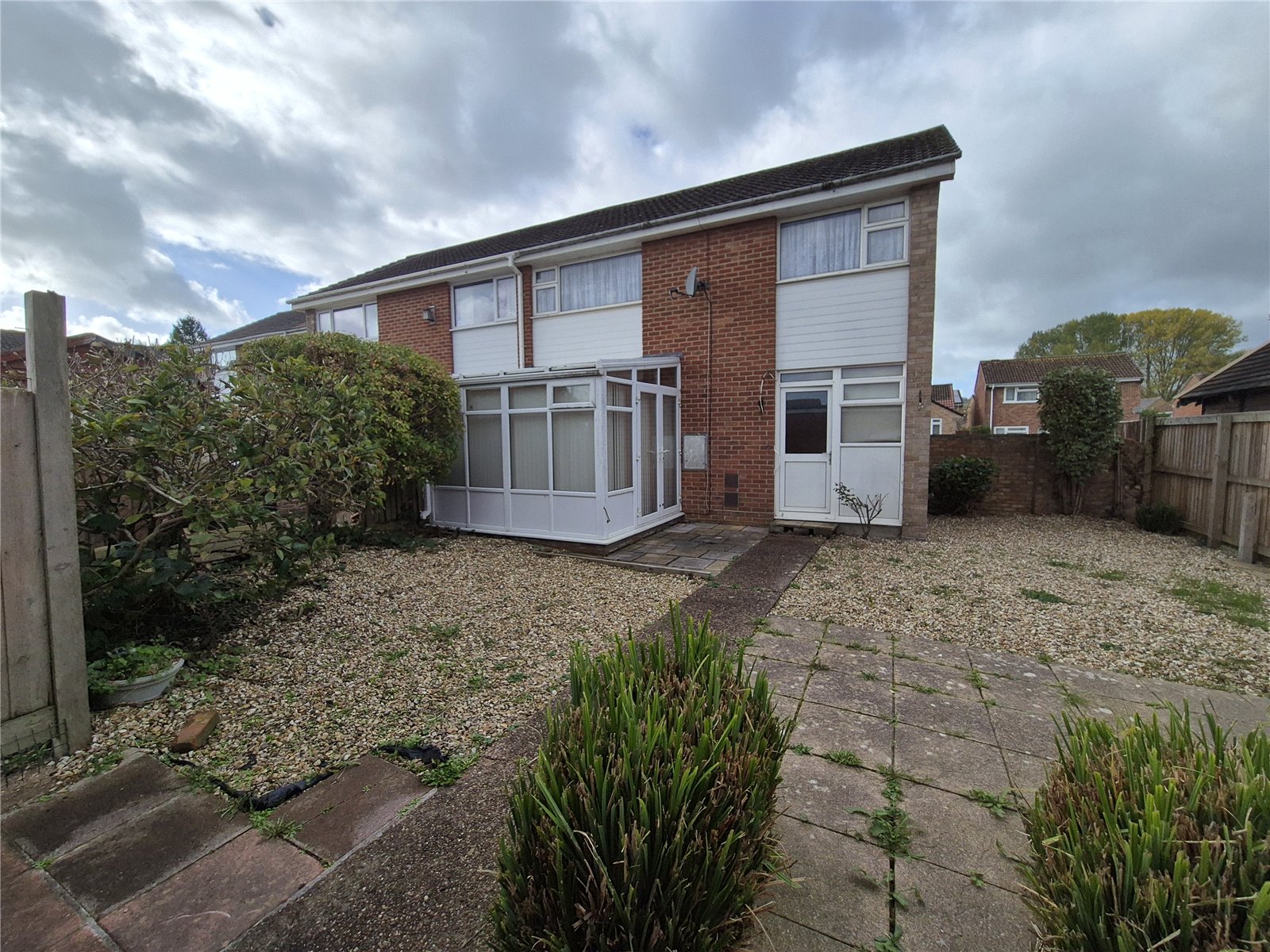 Internally, the accommodation comprises an entrance hallway, downstairs cloakroom, a bright front reception room with sliding doors leading to the conservatory and fitted kitchen. Upstairs, there are three bedrooms and a shower room.