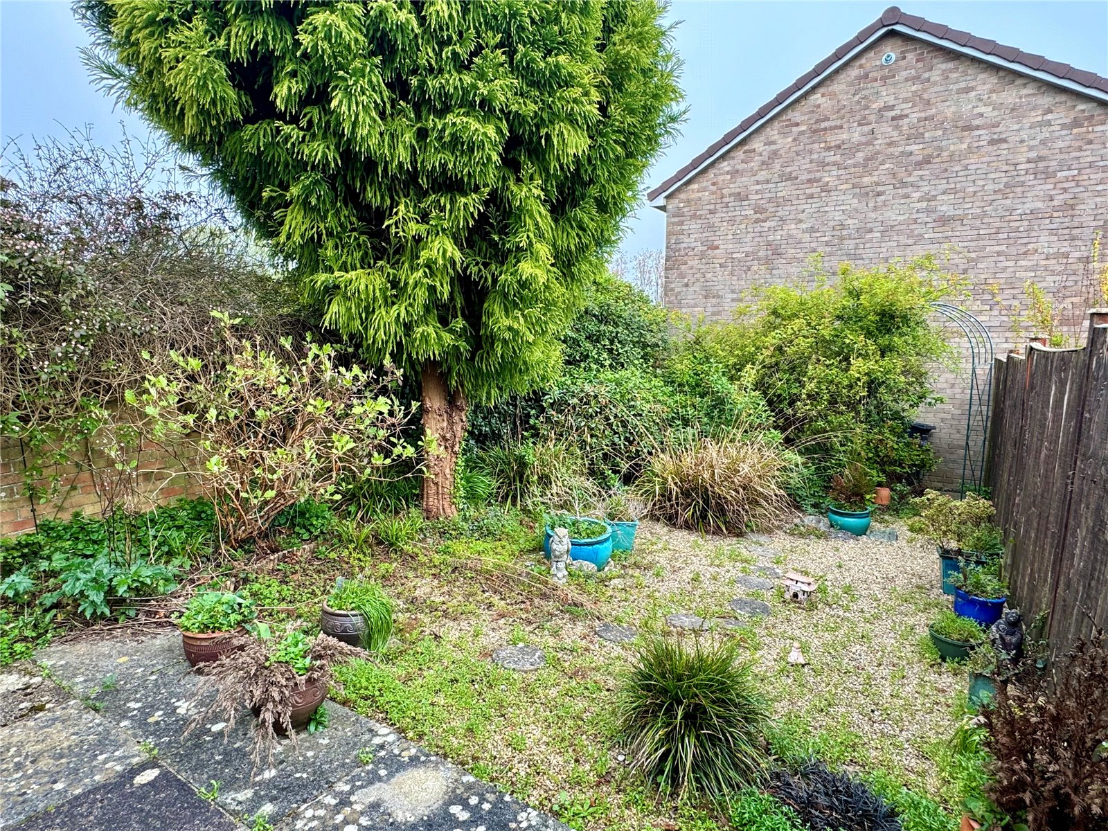 Outside The property enjoys gardens to three sides. A concrete path leads to the main entrance door. The front is mainly laid to lawn enclosed by mature hedging & tree that continues along the side of the property. The rear garden is mainly made up of a mixture of paving and stone chippings enclosed by a selection of mature planting. A mixture of brick walling and wooden fencing secures the rear garden with a gate leading to a pathway providing rear access whilst giving access to the garage.
