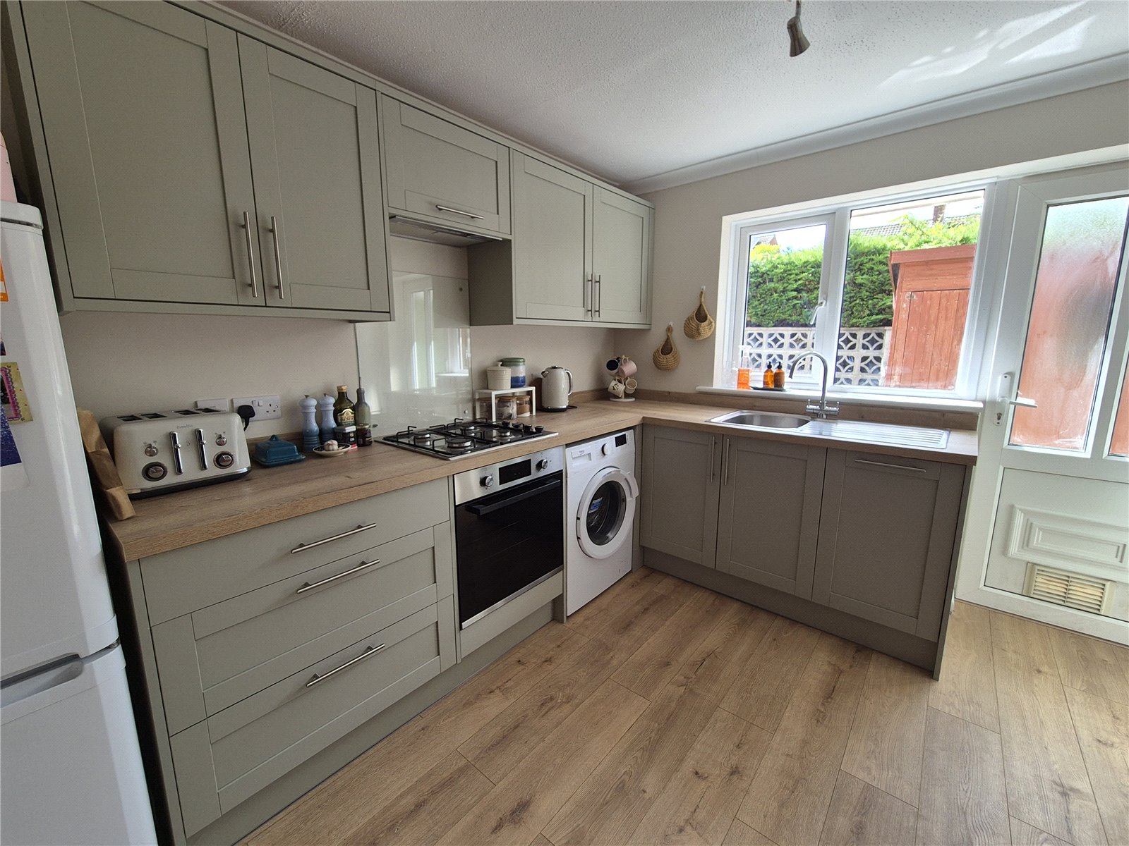 Kitchen 10'10" x 9'7" (3.3m x 2.92m). Comprehensively fitted with a range of modern matching wall and base units with adjoining work top preparation surface and inset stainless steel sink and drainer with mixer tap over. Inset oven and hob with cooker hood over and slimline dishwasher. Appliance spaces for washing machine and fridge/freezer. Radiator, wall mounted gas central heating boiler, uPVC double glazed window and uPVC double glazed door giving access to the rear garden.