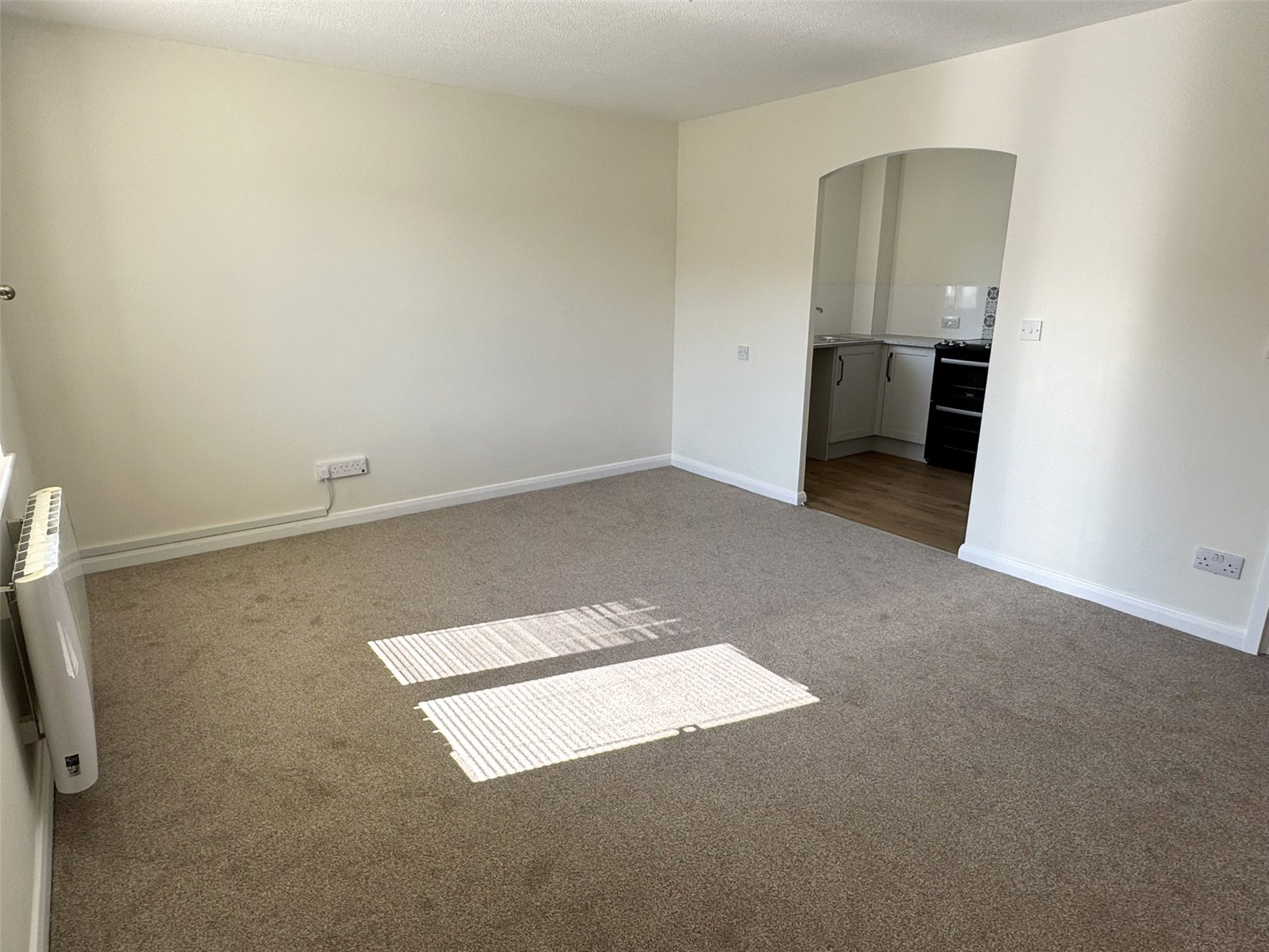 Lounge 14'7" x 11'11" (4.45m x 3.63m). Two double glazed windows to the front aspect. Wall mounted electric radiator, television point, telephone entry phone. Opening through to kitchen.