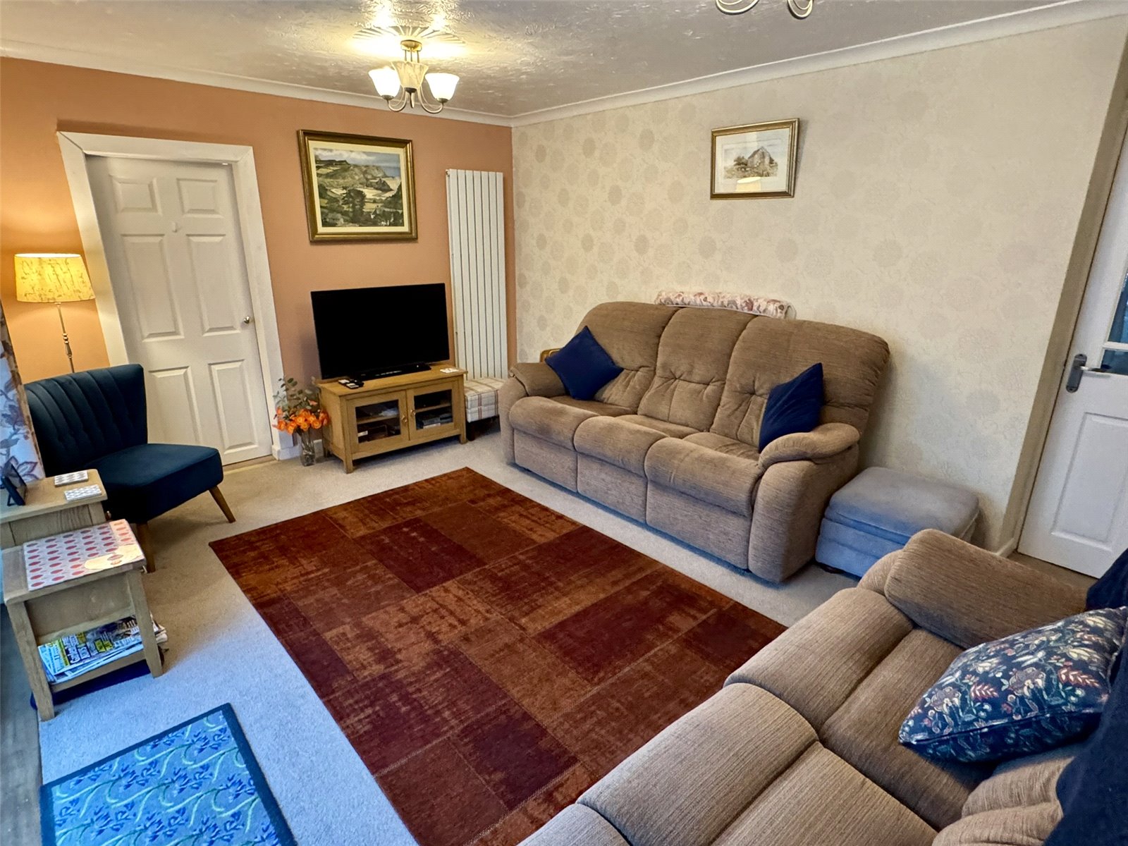 Lounge 14'11" x 11'4" (4.55m x 3.45m). Television point, tall wall mounted radiator. Double glazed sliding doors with side windows out to conservatory. Door out to dining room.