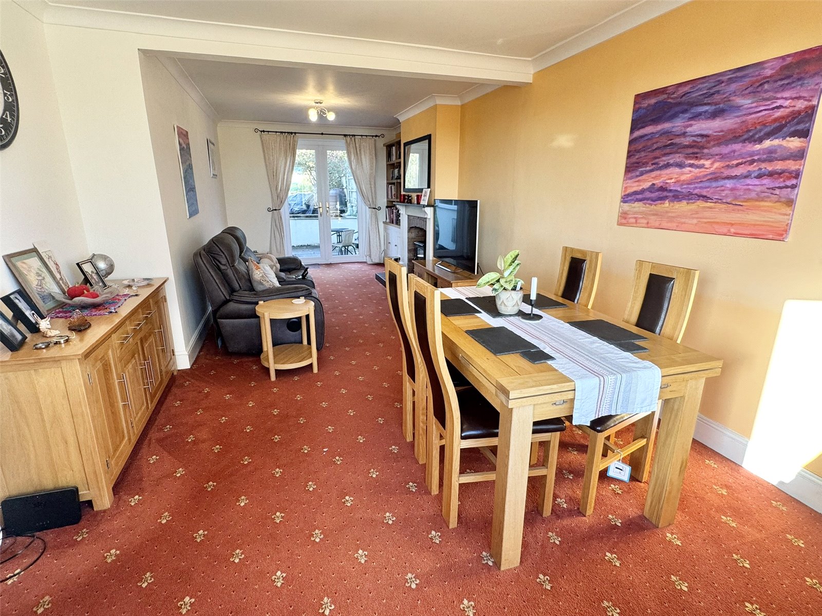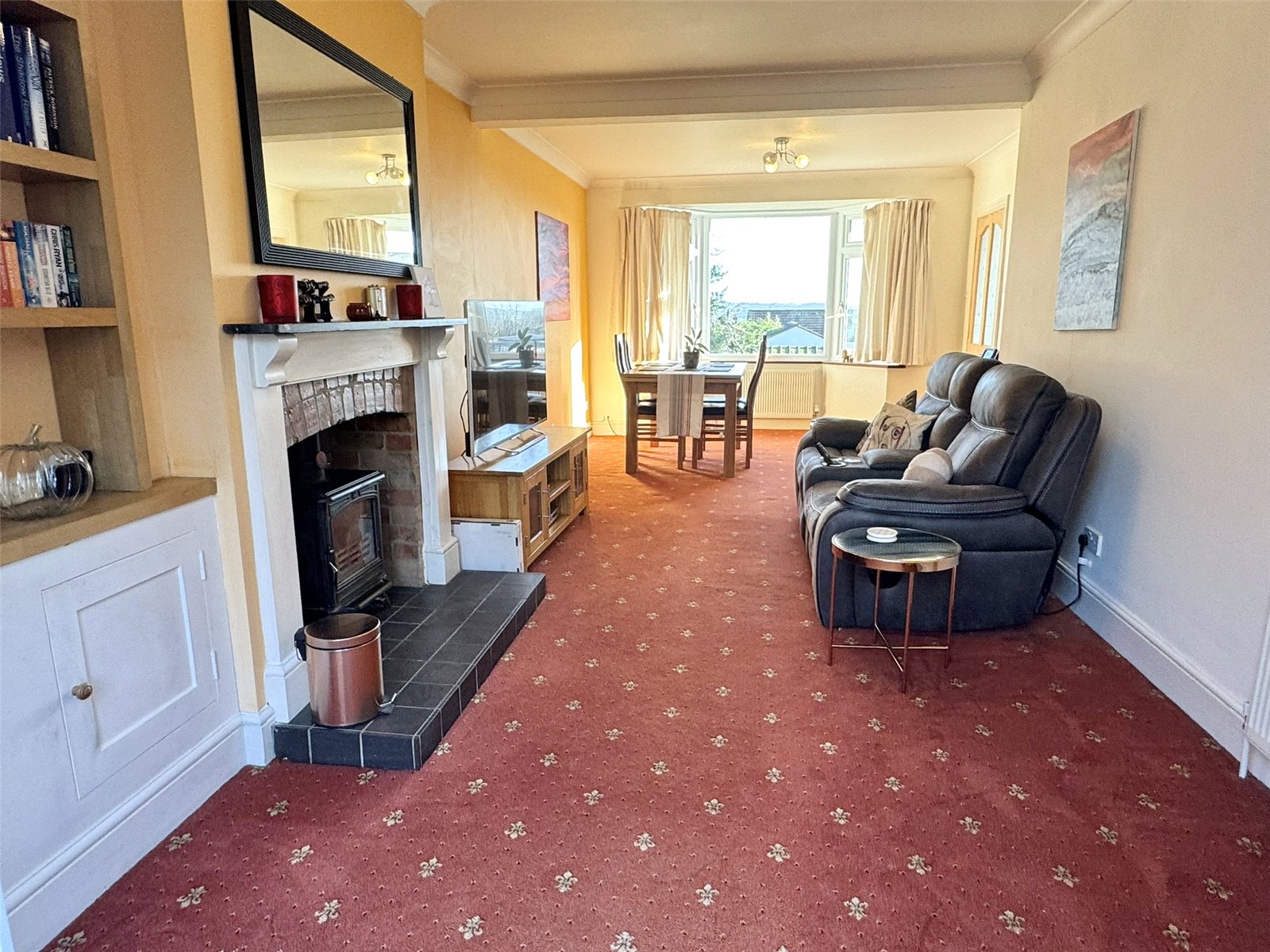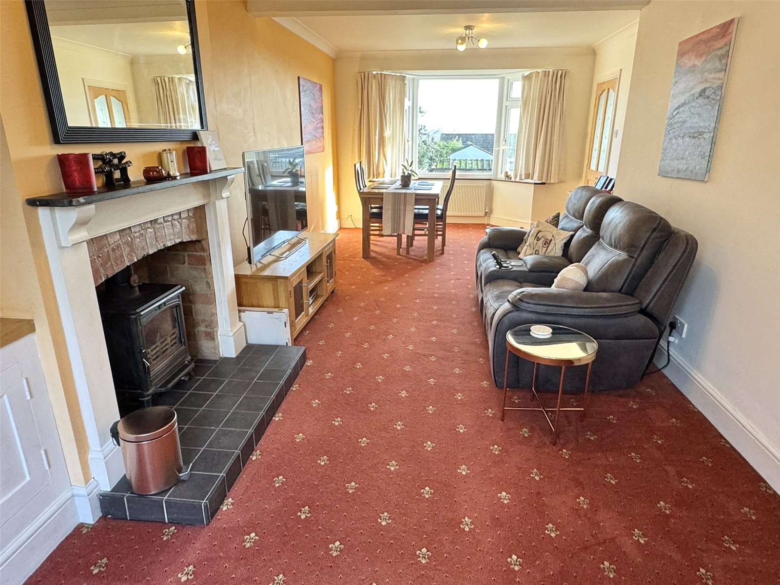 Lounge/Diner 27' (8.23m) x 11'8" (3.55m) narrowing to 9'11" (3.03m) into bay window. Attractive fireplace with inset multi-fuel stove, fitted dresser with storage and shelving. Two radiators, television point. Double glazed bay window to the rear aspect and double glazed double doors opening out on to patio.