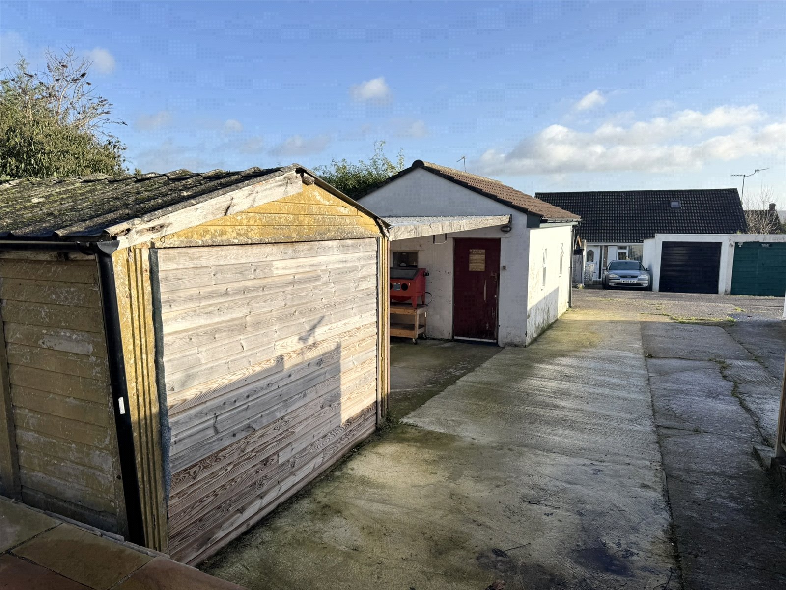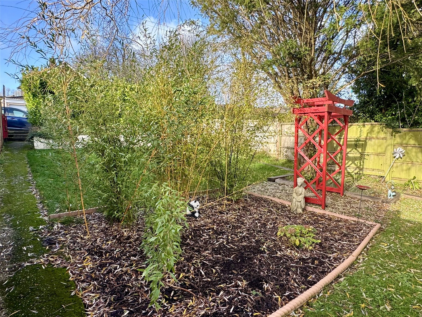 Outside The front of the property is approached via a pedestrian gate giving access through to a pathway leading through the front garden to the main entrance door. The front garden is mainly laid to lawn with a selection of mature borders. A paved seating area overlooks and elevated feature pond with step down to the main entrance door. Paving continues along the side of the property leading to the long rear garden laid to areas of lawn, paving and stone chippings. At the rear of the garden there is a single garage, car port/storage area and a further concrete panelled single garage. An area of hardstanding to the side and front of the garages provides off street parking.