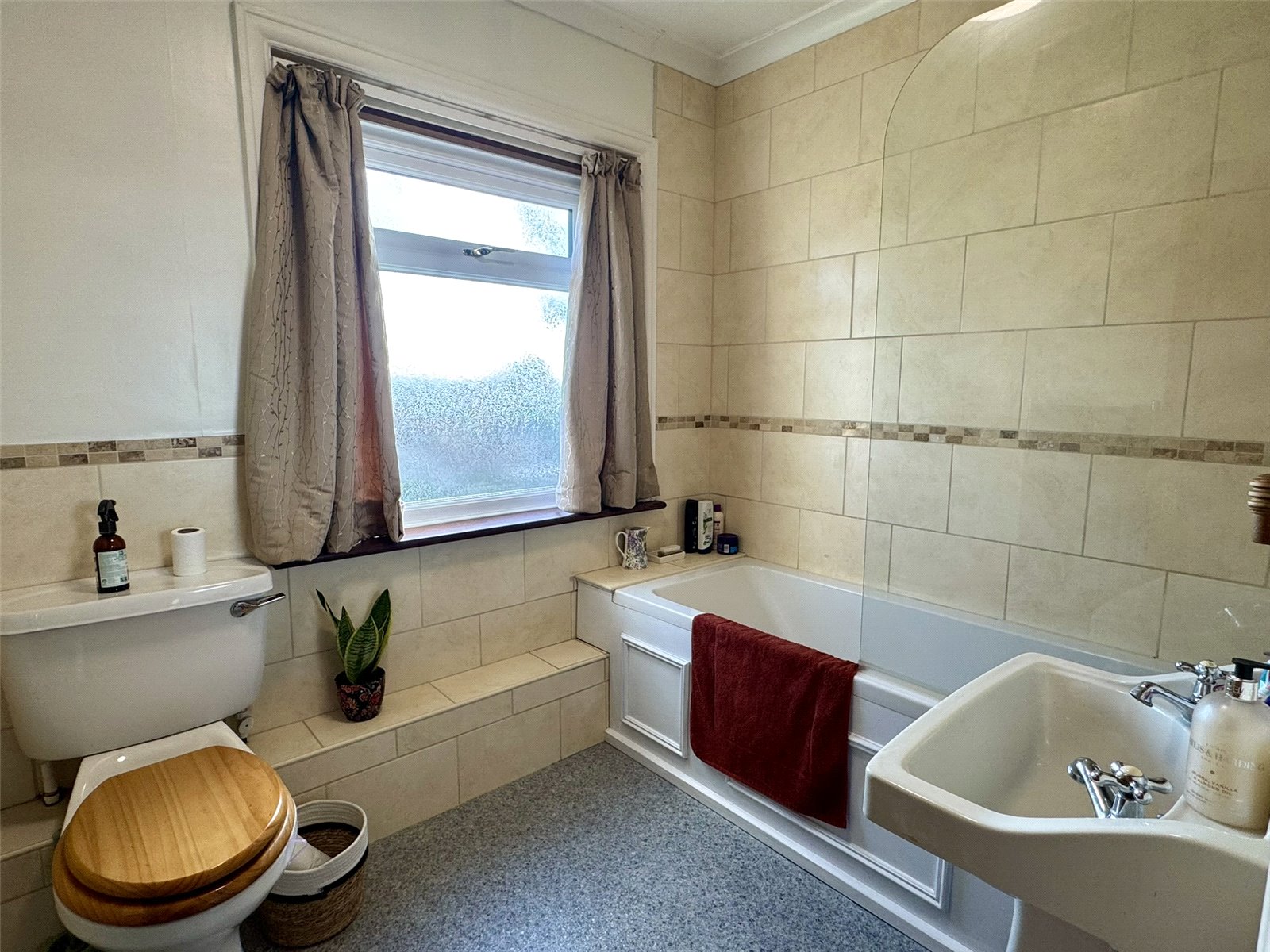 Bathroom Fitted with a three-piece suite comprising panelled bath with mains shower and screen over, low-level W.C. and pedestal wash hand basin. Extractor, heated towel rail and opaque double glazed window to the rear aspect.