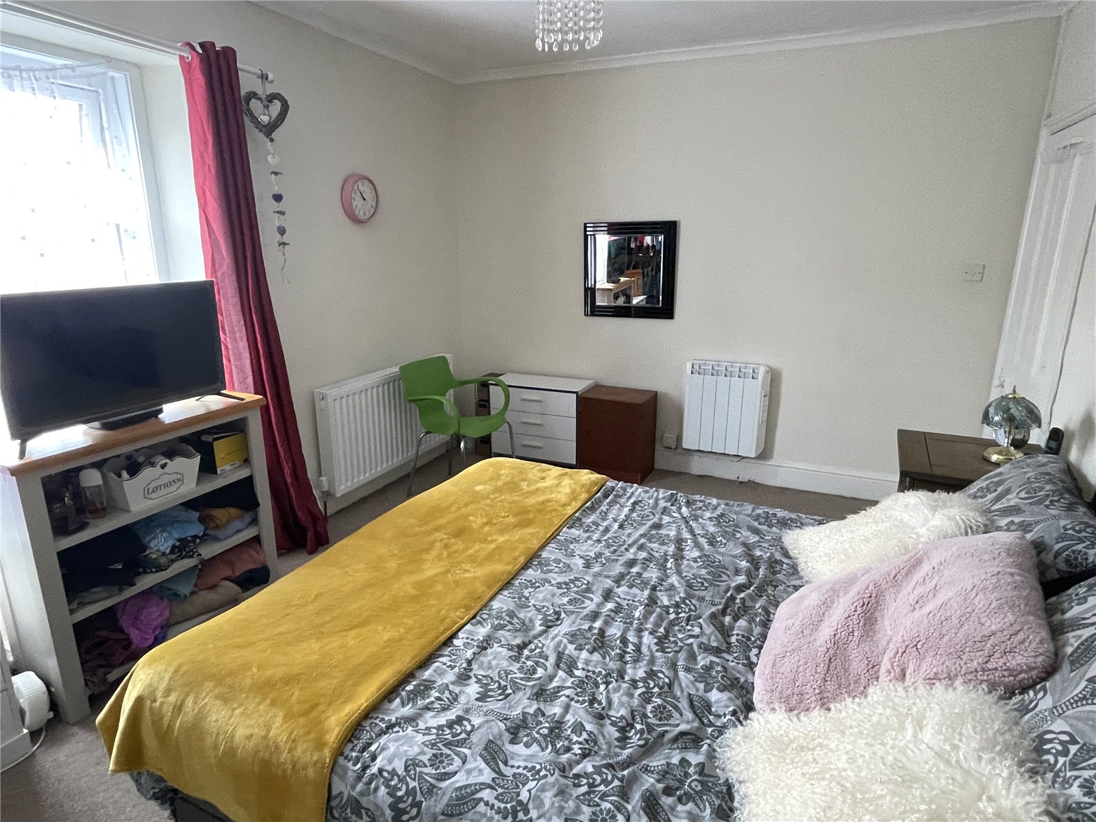 Master Bedroom 14'4" x 10'11" (4.37m x 3.33m). Radiator, additional electric panel heater, double glazed window to the front aspect and attractive antique style feature fireplace.