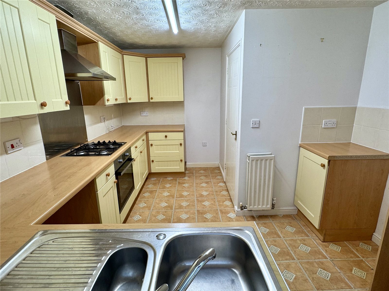Kitchen 12'6" (3.8m) narrowing to 6'9" (2.06m) x 10'6" (3.2m). Fitted with a range of matching wall and base units set beneath worktops with inset electric oven and gas hob with hood over. Space and plumbing for dishwasher and washing machine, space for fridge freezer. Door and window out to conservatory. Radiator and concealed wall mounted central heating boiler.