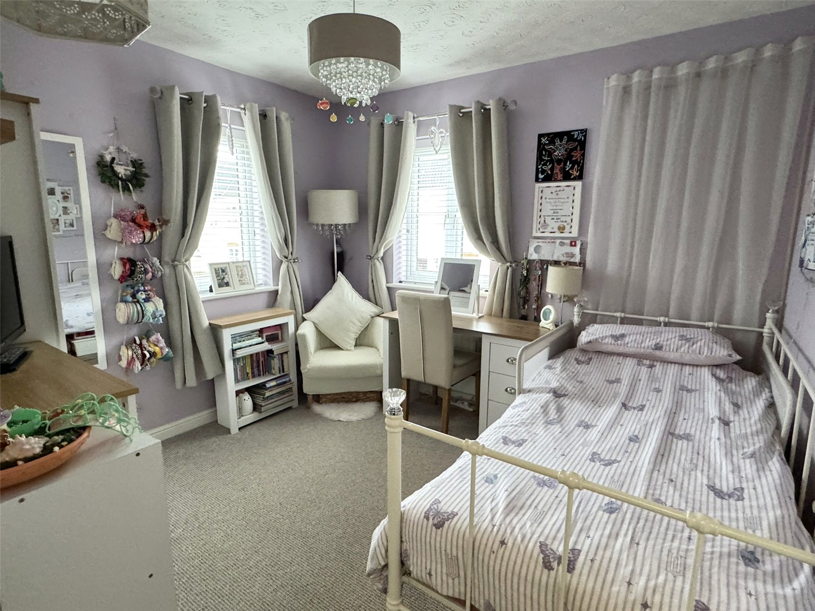 Bedroom One 13'10" x 10'4" (4.22m x 3.15m). Dual aspect double glazed windows to the side and front. Radiator, television point and door to ensuite shower room.