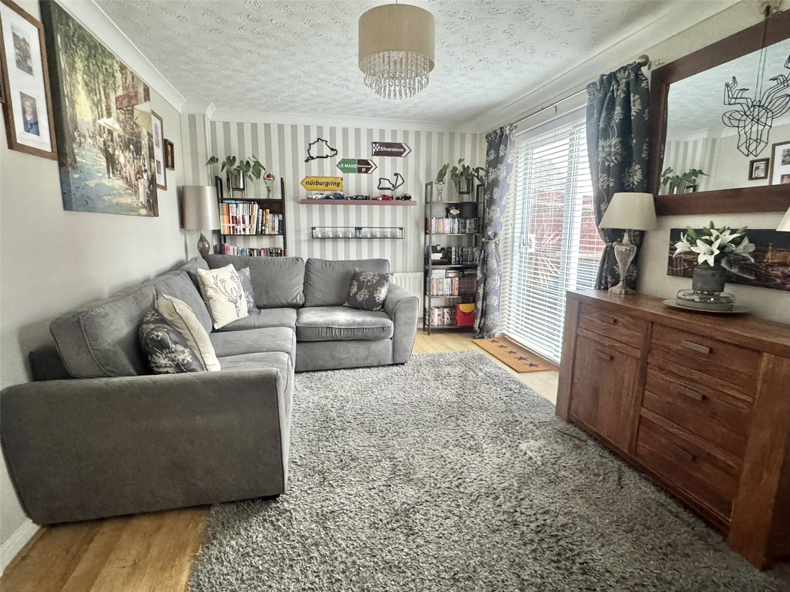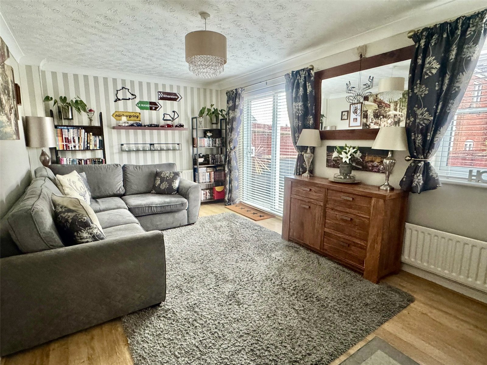 Lounge 17'1" (5.21m) x 10' (3.05m) narrowing to 9'3" (2.81m). Dual aspect room with double glazed windows to the front and side. Two radiators, television point and double glazed sliding door out on to rear patio.