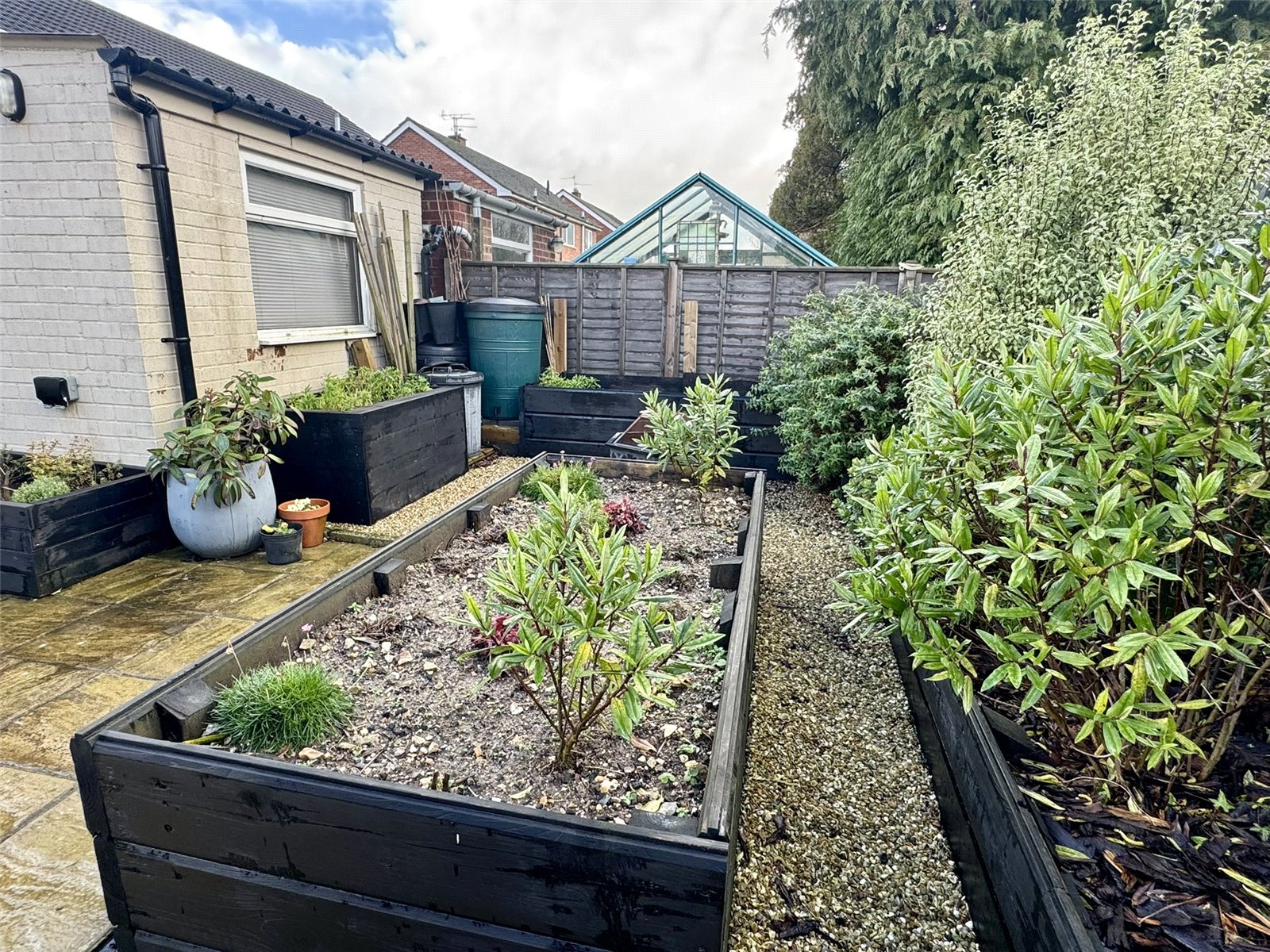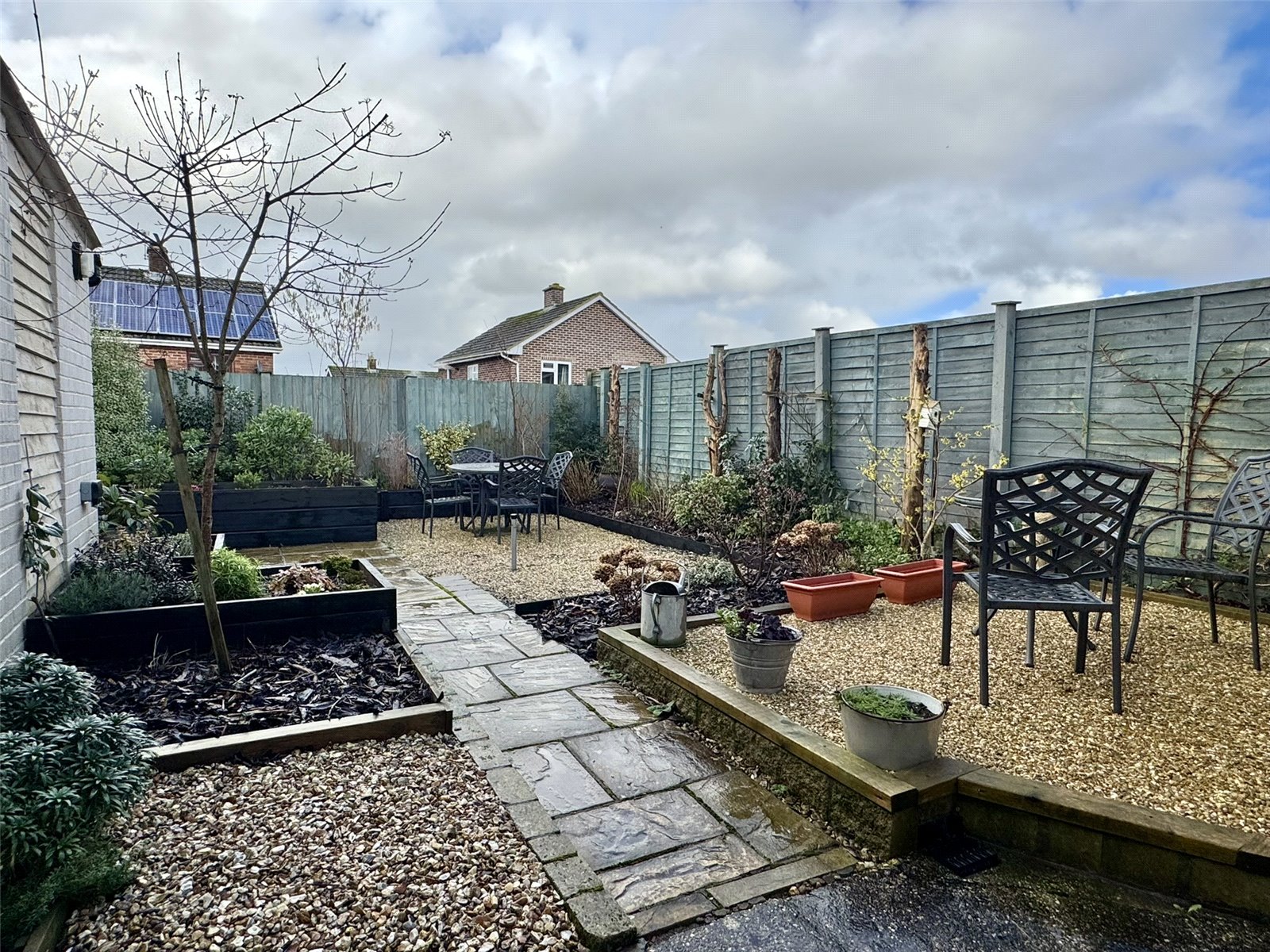 Rear Aspect The rear garden has been beautifully landscaped with areas laid to stone chippings, lawn and patio. A selection of raised flower beds with a stone chipped area to the rear providing a lovely seating space.