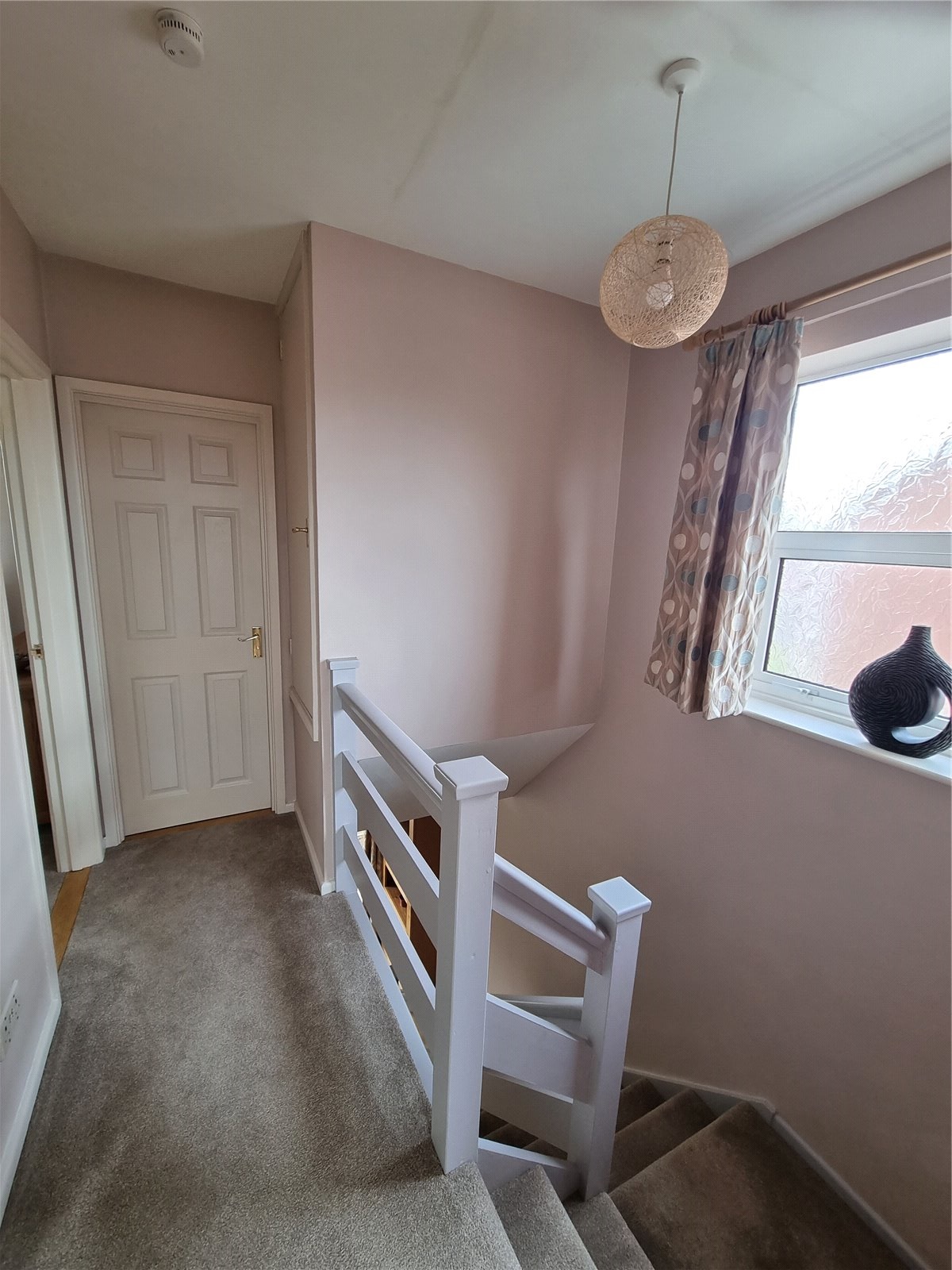 First Floor Landing uPVC double glazed window, loft access and built in airing cupboard housing gas central heating boiler.