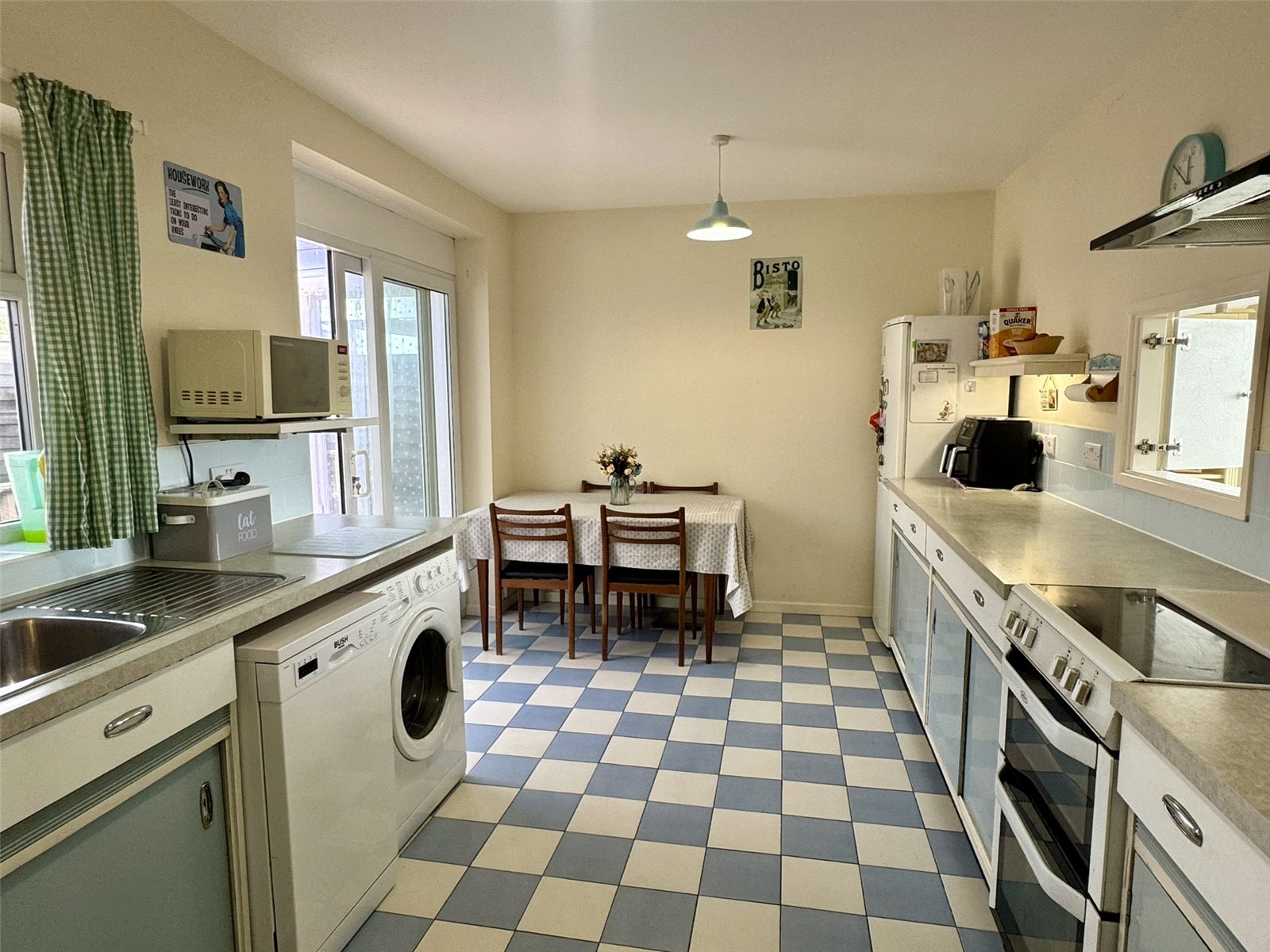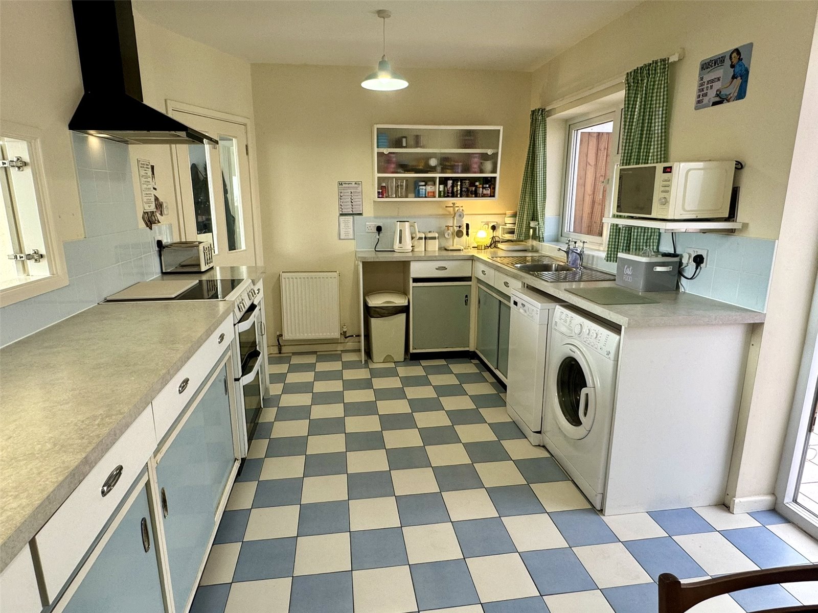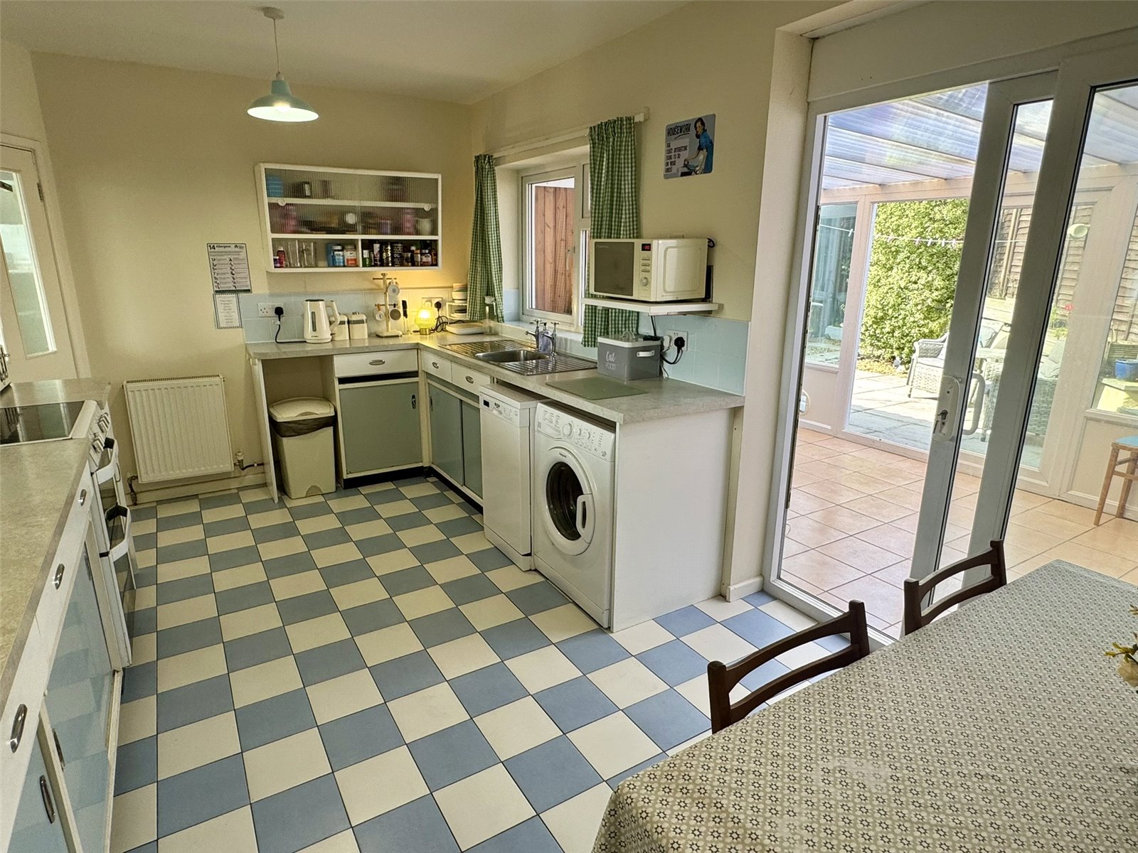 Kitchen/Diner 15'10" x 9'3" (4.83m x 2.82m). Fitted with a retro style kitchen comprising a selection of wall and base units with inset sink and double drainer. Space for cooker with hood over, space and plumbing for washing machine. Double glazed window to the rear aspect and double glazed sliding doors out to conservatory.