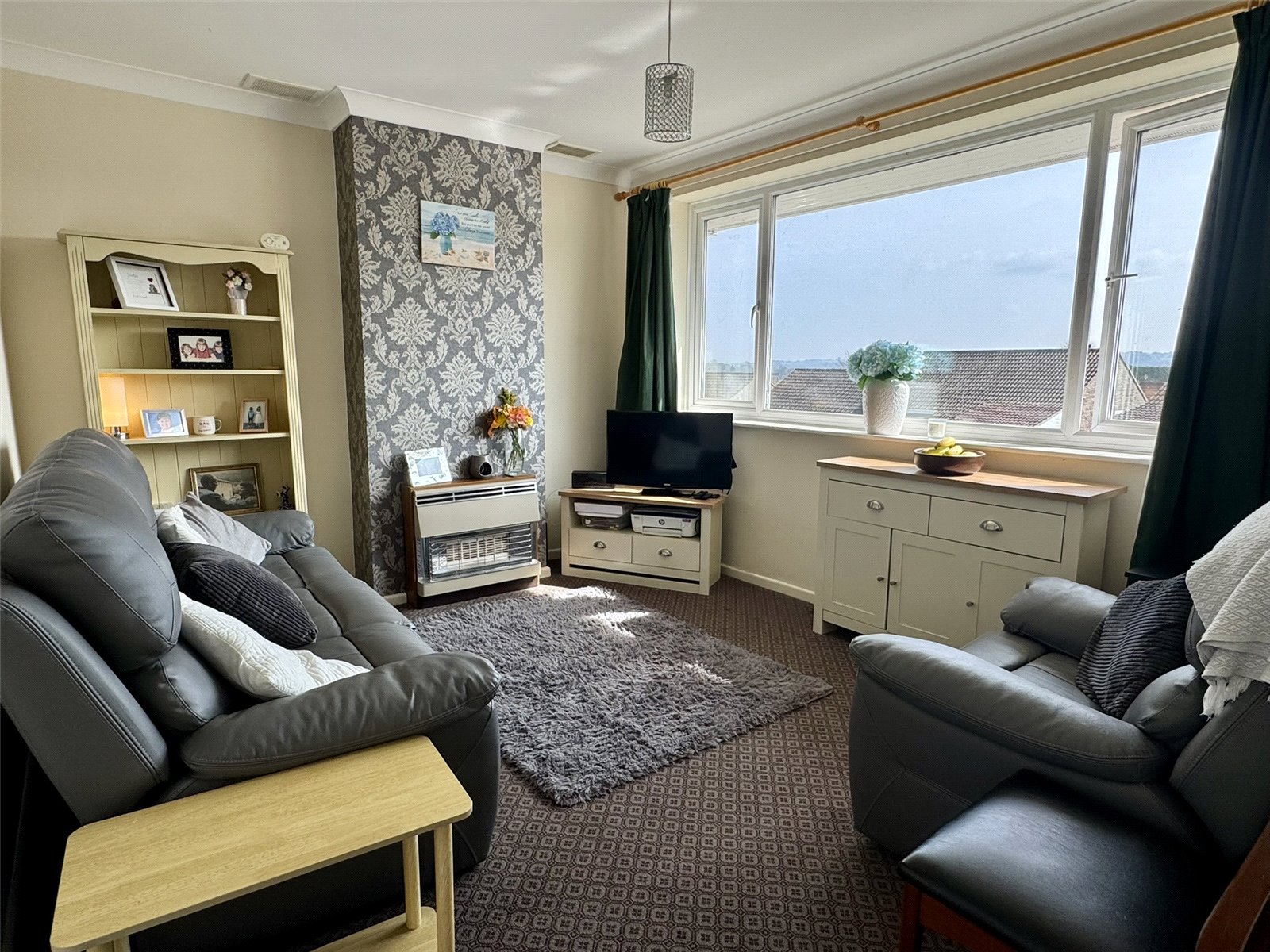 Lounge 12'8" (3.85m) x 10'8" (3.25m) into recess. Gas fire with back boiler, television point, hatch through to kitchen. Double glazed window to the front aspect with views across roof tops to countryside beyond.
