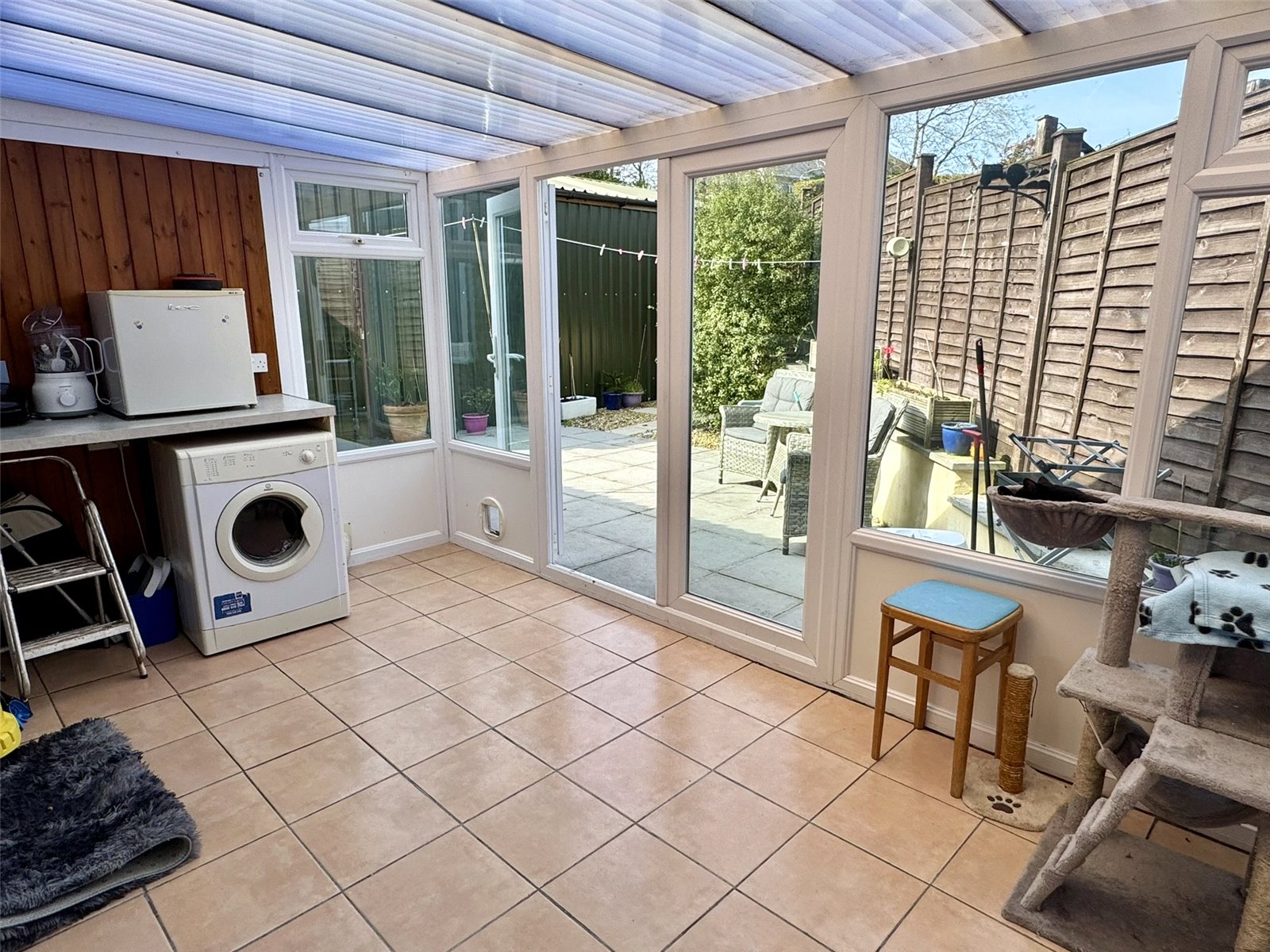 Conservatory 13'10" x 8'4" (4.22m x 2.54m). Of uPVC double glazed construction. Radiator, tiled flooring, space and plumbing for washing machine, space for tumble dryer. Double glazed double doors opening out to rear garden.