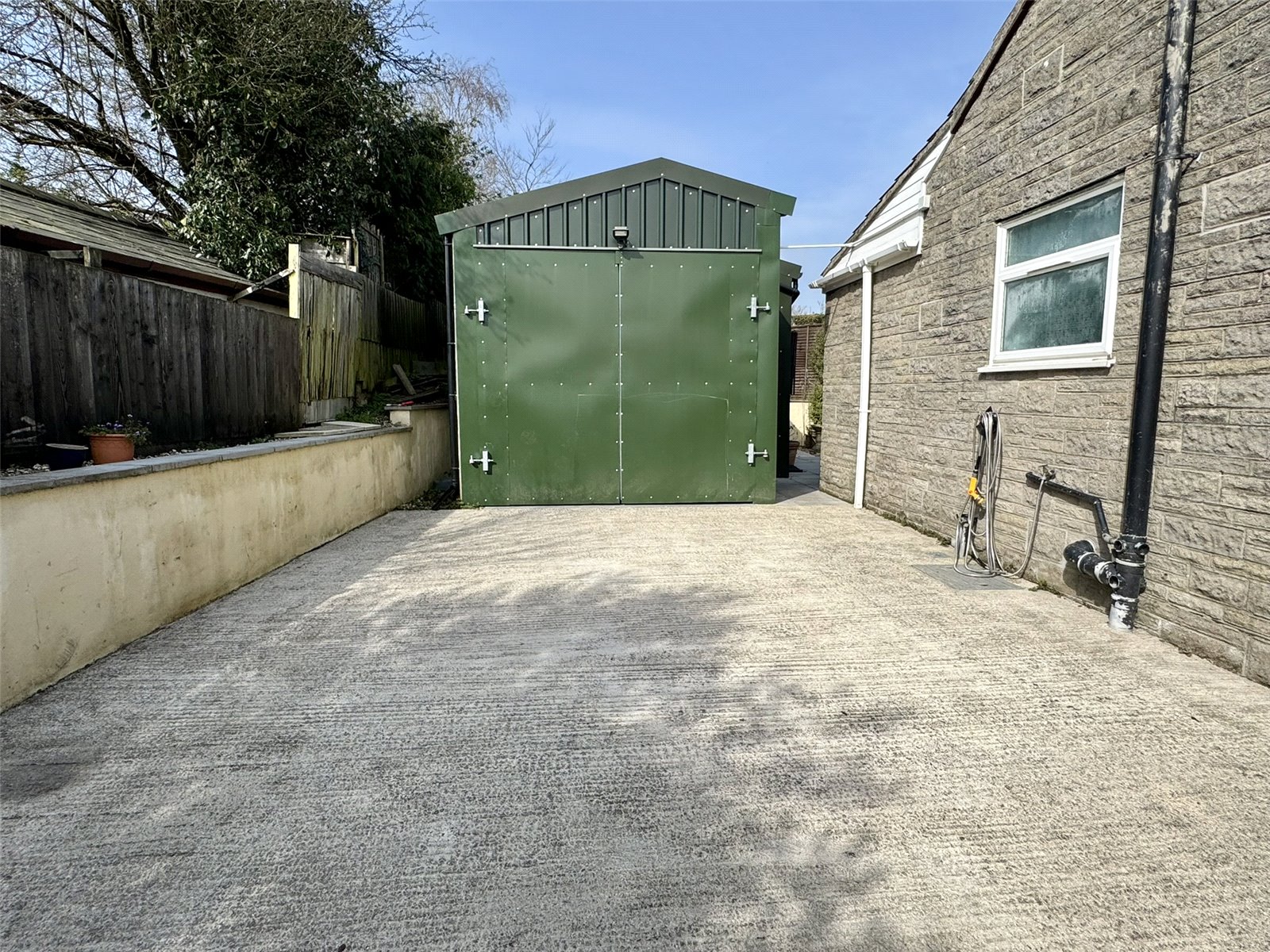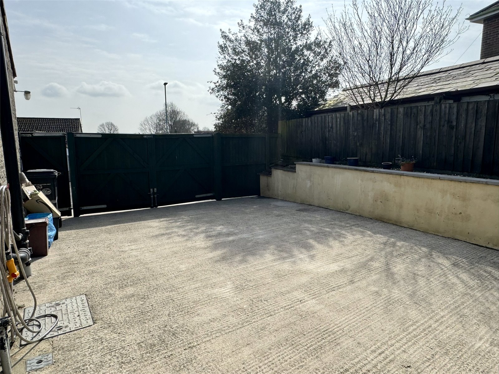 Front The front garden is laid to resin providing off street parking for several vehicles whilst giving access to the main entrance door. Wooden double gates open into a concrete driveway providing additional secure off street parking whilst giving access to a large outbuilding/garage/workshop. An opening leads through to the rear garden.