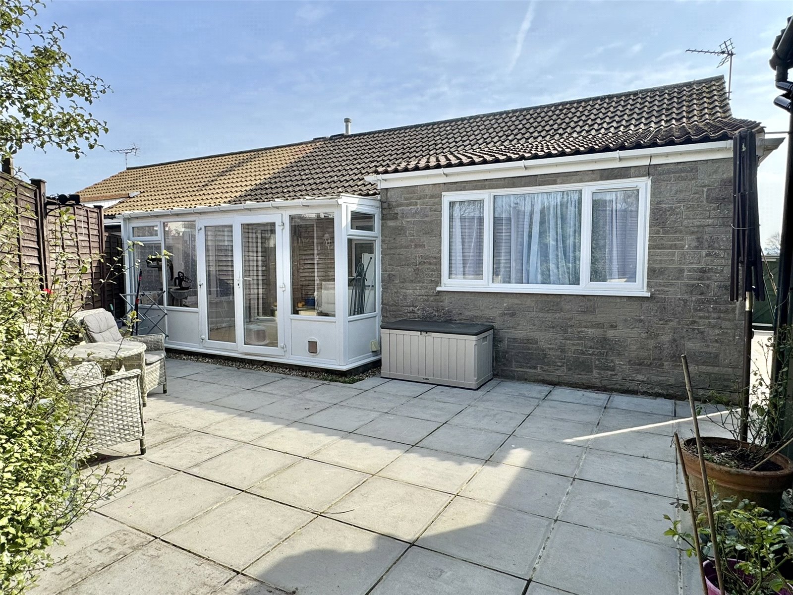 Positioned in an elevated setting, this well-presented two-bedroom semi-detached bungalow enjoys far-reaching views across the village rooftops and rolling countryside beyond. The property offers generous off-street parking for several vehicles, leading to a substantial metal outbuilding/garage, ideal for storage, workshop use, or a variety of other purposes.Inside, the home is welcoming, featuring a stylish retro-inspired kitchen diner that provides a vibrant and practical space for everyday living. Sliding double doors open seamlessly into a bright conservatory, creating an ideal spot to relax while leading out to the garden.The main lounge is a standout feature, benefitting from a large front aspect window that perfectly frames the elevated outlook, filling the room with natural light. There are two well-proportioned bedrooms, including a spacious principal bedroom with built-in wardrobe storage, alongside a generous second double bedroom. Both are served by a well-appointed main bathroom.Further benefits include double glazing throughout and gas central heating via a back-boiler, ensuring comfort and efficiency all year round. This delightful bungalow combines charm, practicality, and a sought-after position, making it an excellent choice for a range of buyers.