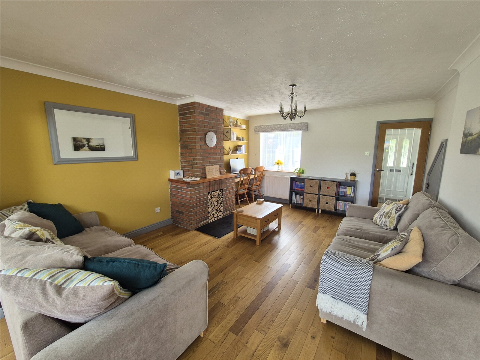 Lounge Area 16'6" (5.02m) x 13' (3.96m) narrowing to 12'7" (3.84m). Brick built fireplace with space for wood burner, engineered Oak flooring, radiator, television point, telephone point, understairs storage cupboard, double glazed window to the front aspect. Opening through to kitchen and dining area.