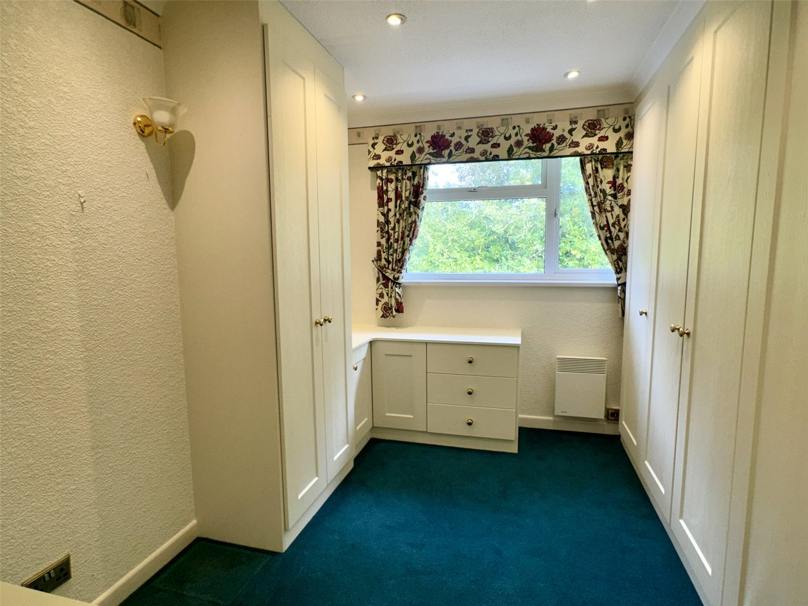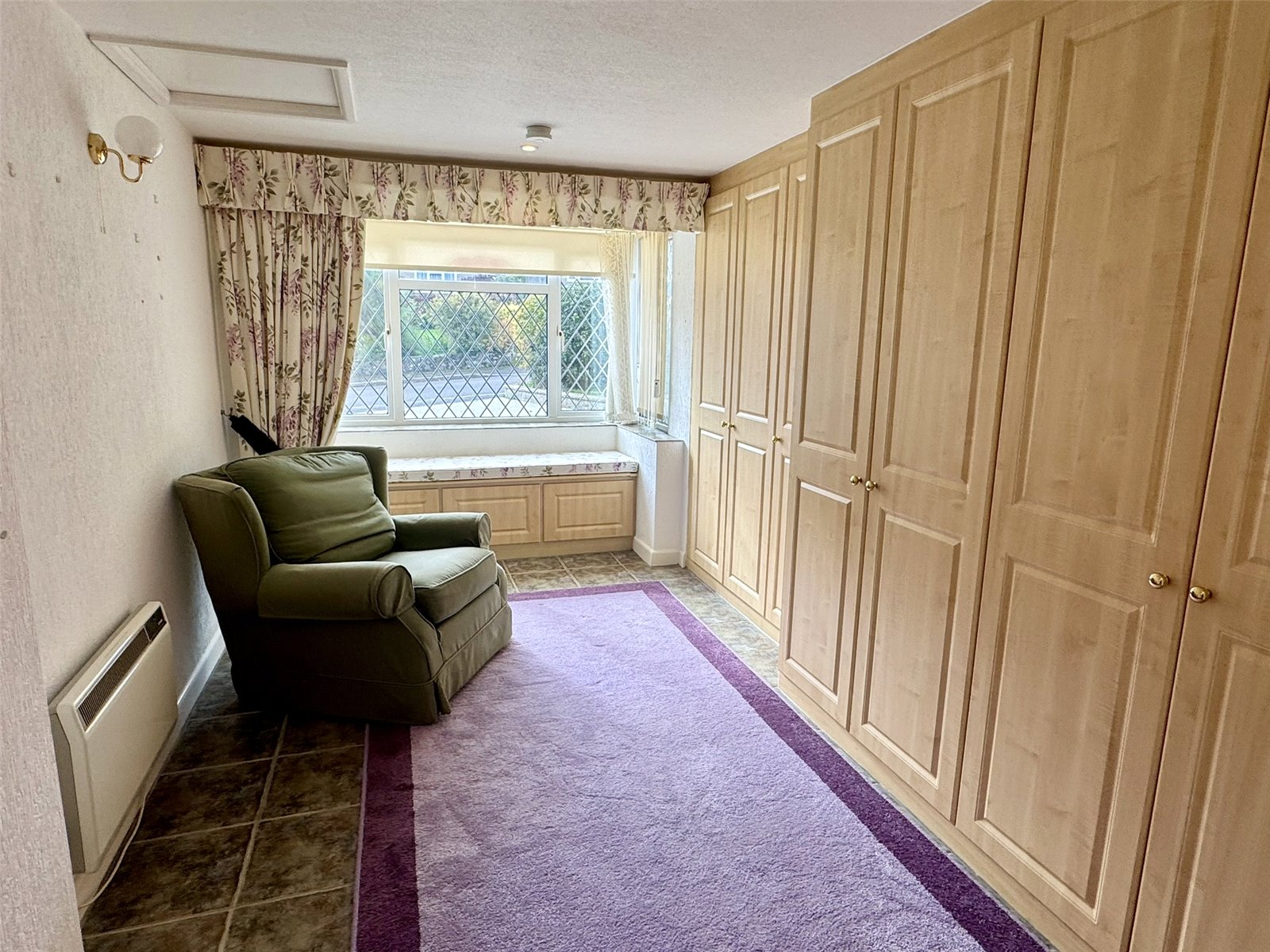 Bedroom Four/Reception Room 18'11" (5.76m) x 8'7" (2.62m) into Bay. Electric night storage heater. A selection of fitted wardrobes. Double glazed bay window to the front aspect and further double glazed window to the side aspect. Door to walk-in wardrobe, storage room with double glazed window to the side aspect.