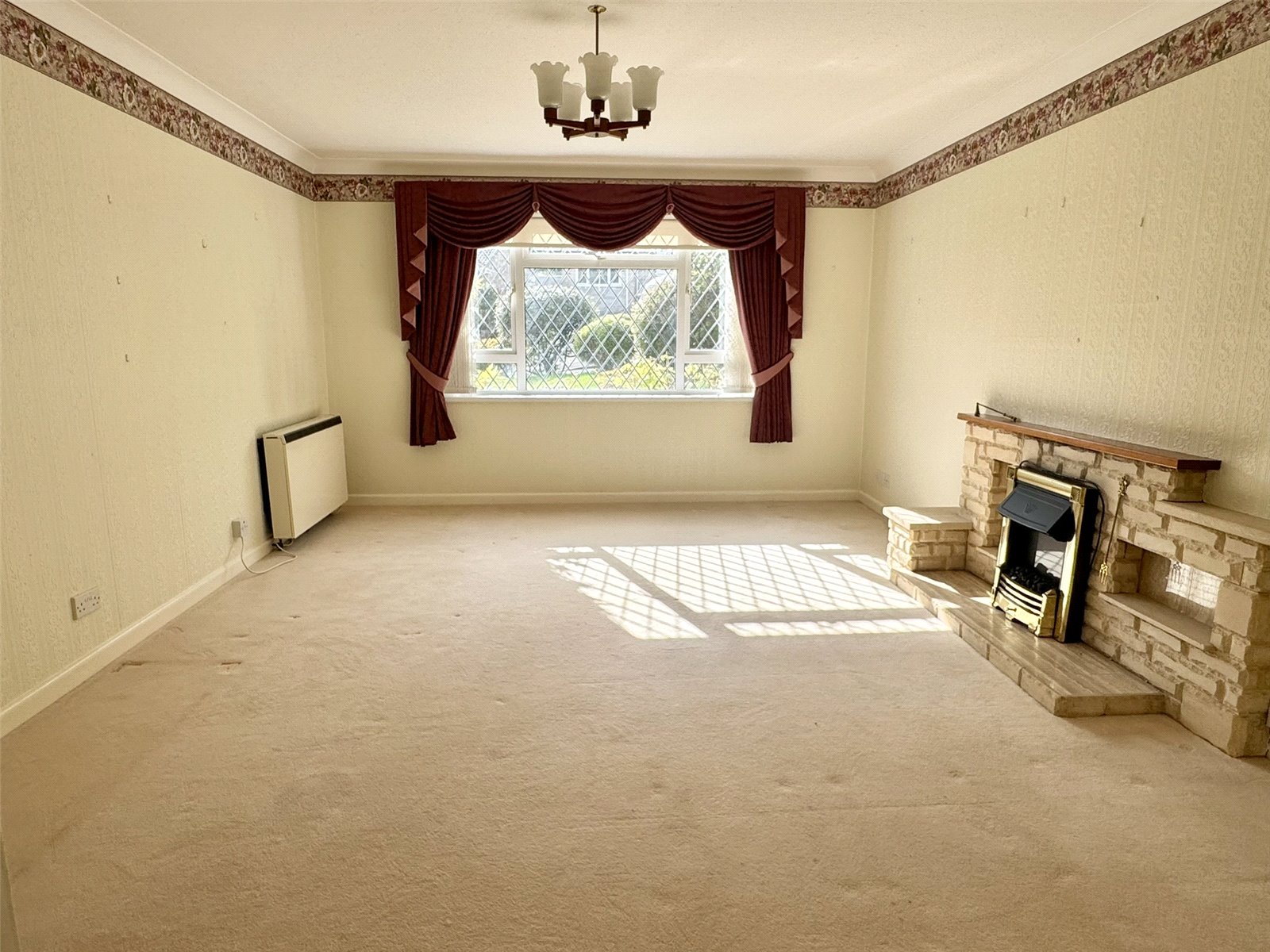 Lounge 17'4" x 12'10" (5.28m x 3.9m). Electric night storage heater, television point, telephone point and double glazed window to the front aspect. Door to dining room.