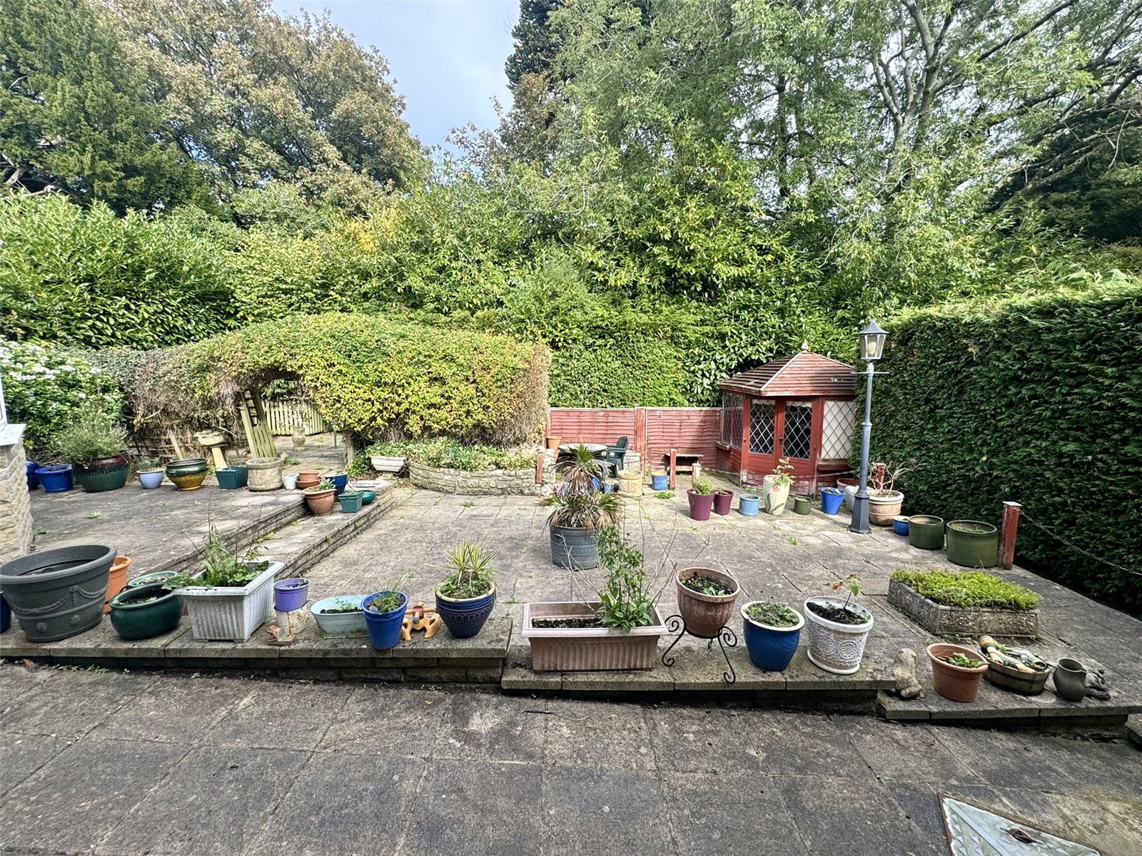 The rear garden enjoys a high degree of privacy made up of areas laid to paving providing various seating areas and giving access to a wooden summer house. There are various raised borders housing mature planting. An open leads to a further paved seating/drying area enclosed by mature hedging. Outside tap. Wooden gate to the side leads to a further wooden storage shed. The whole is enclosed by a mixture of mature hedging, trees and wooden fencing.